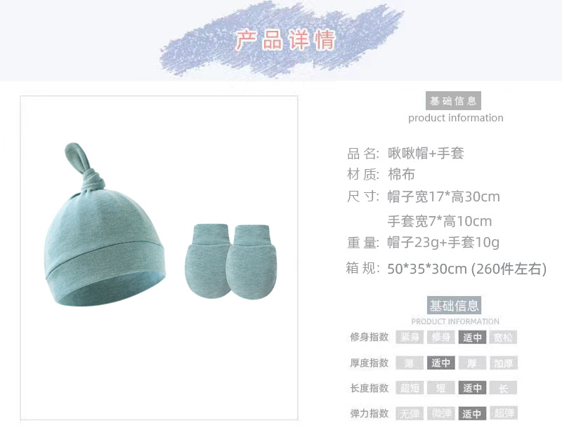 대외 무역 봄과 가을 얇은 아기 태아 모자 신생아 모자 아기 매듭 주 모자 싱글 레이어 모자 장갑 세트스토어 가기