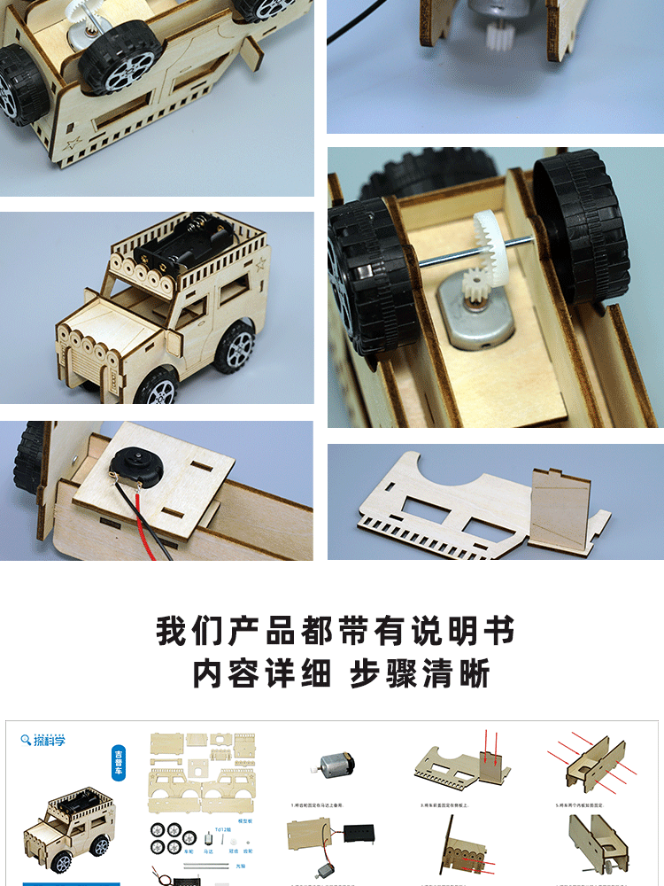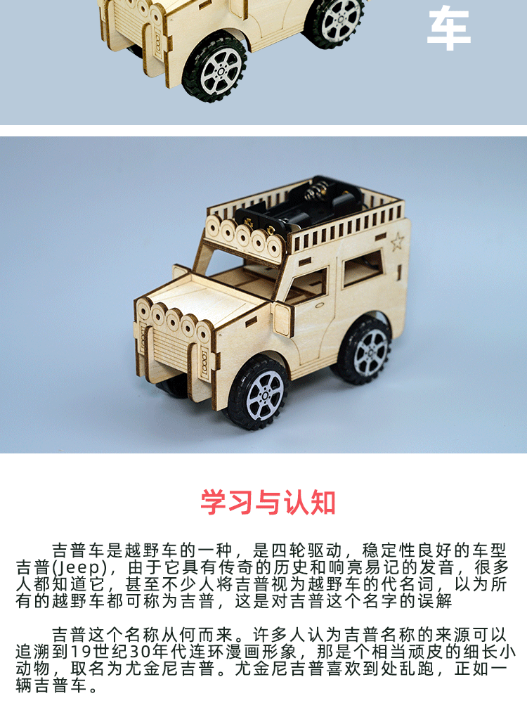 창작 기술 소 만들기 작은 발명품 장난감 자동차 DIY 나무 지프 학생 과학 실험 수제품 재료스토어 가기