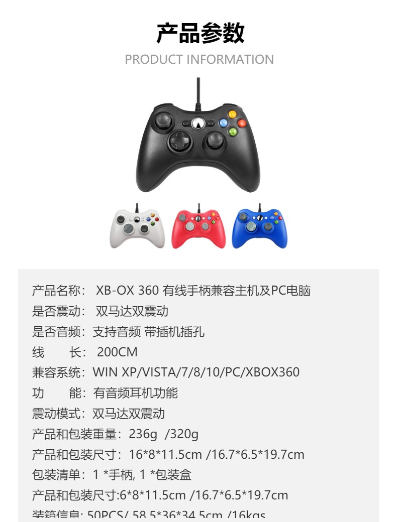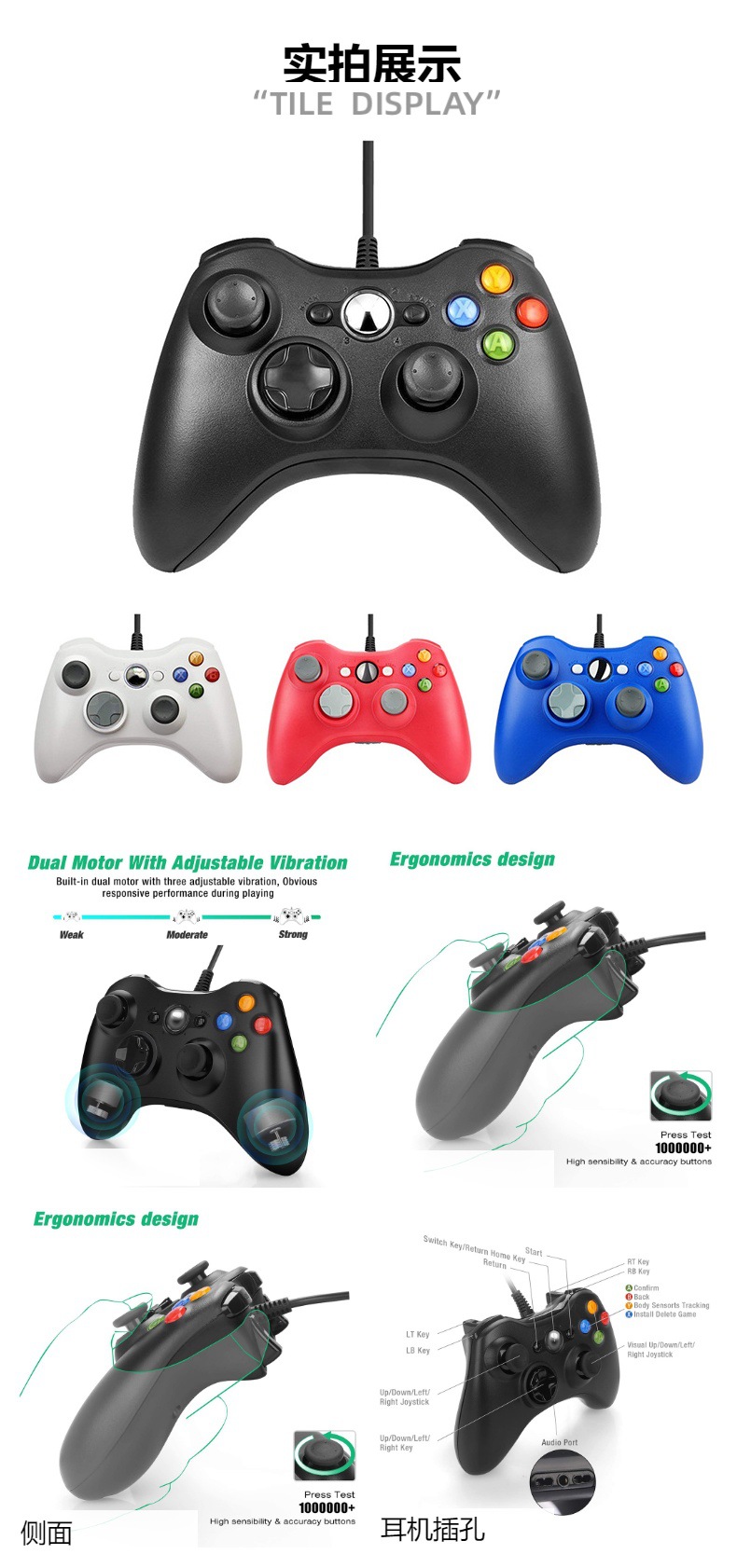 X-box360 유선 게임 컨트롤러 USB 컴퓨터 PC360 범용 듀얼 진동 호환 360 콘솔 e스포츠