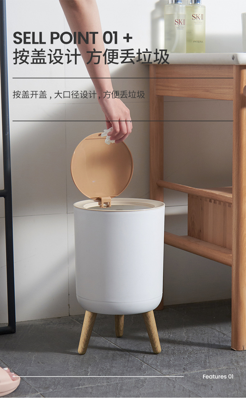 맞춤형 가정용 쓰레기통, 대형, 대용량, 거실 쓰레기통, 뚜껑이 있는 두꺼운 높은 다리, 욕실 쓰레기통스토어 가기