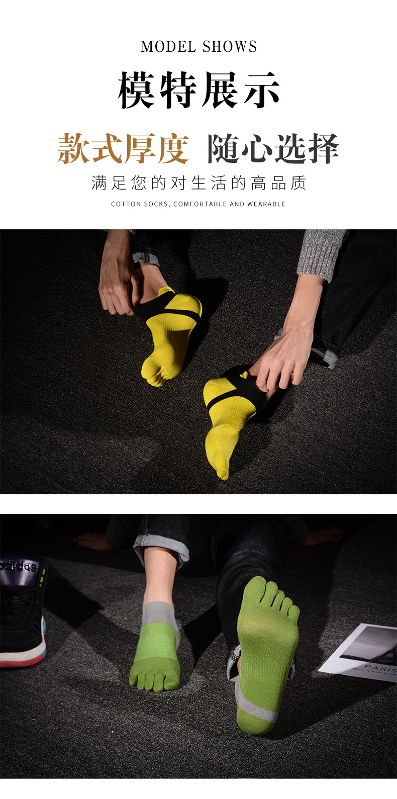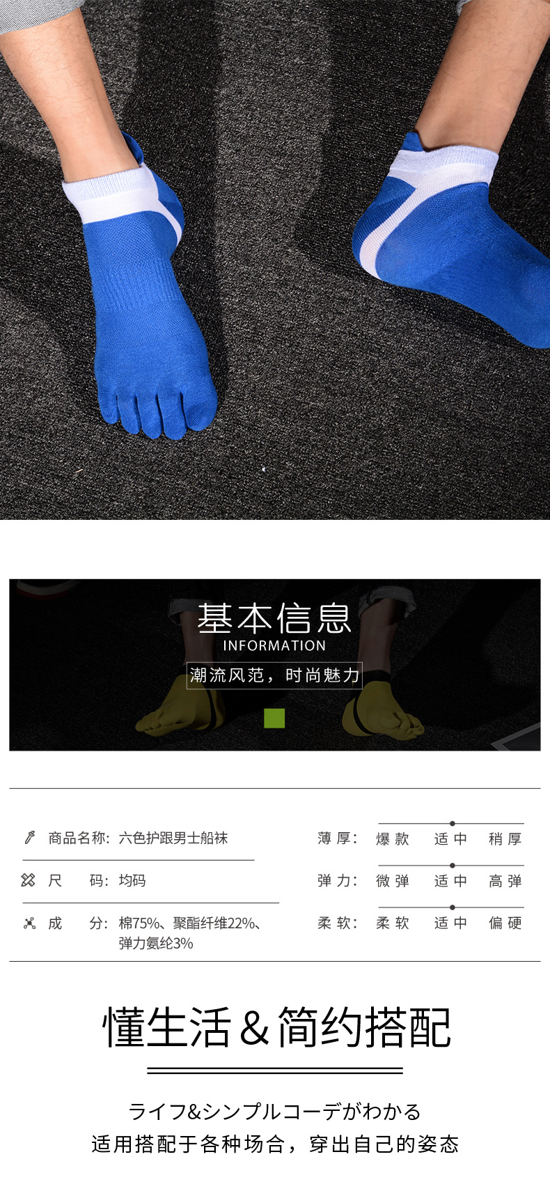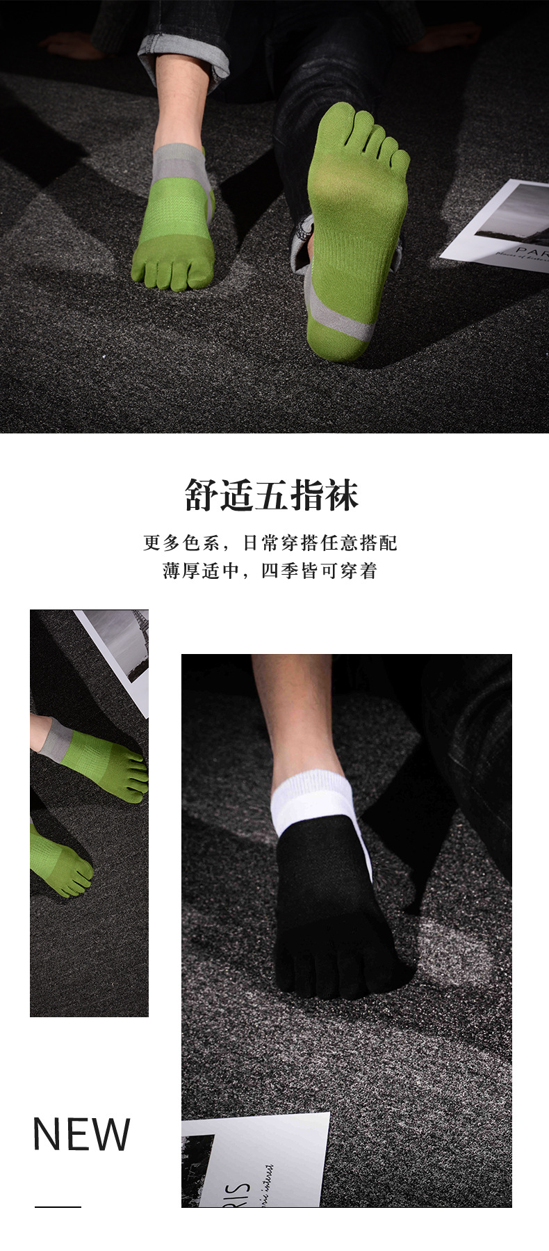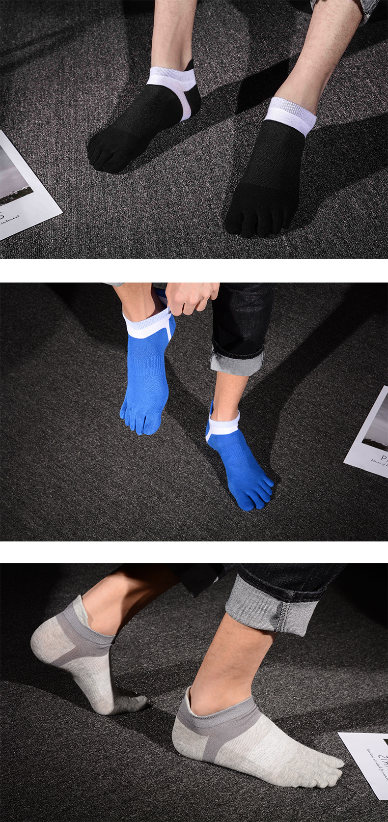 다섯 손가락 양말 봄 여름 가을 보트 양말 남성용 6 색 발 뒤꿈치 보호 성격 발가락 양말 짧은 유행 개성면 양말스토어 가기