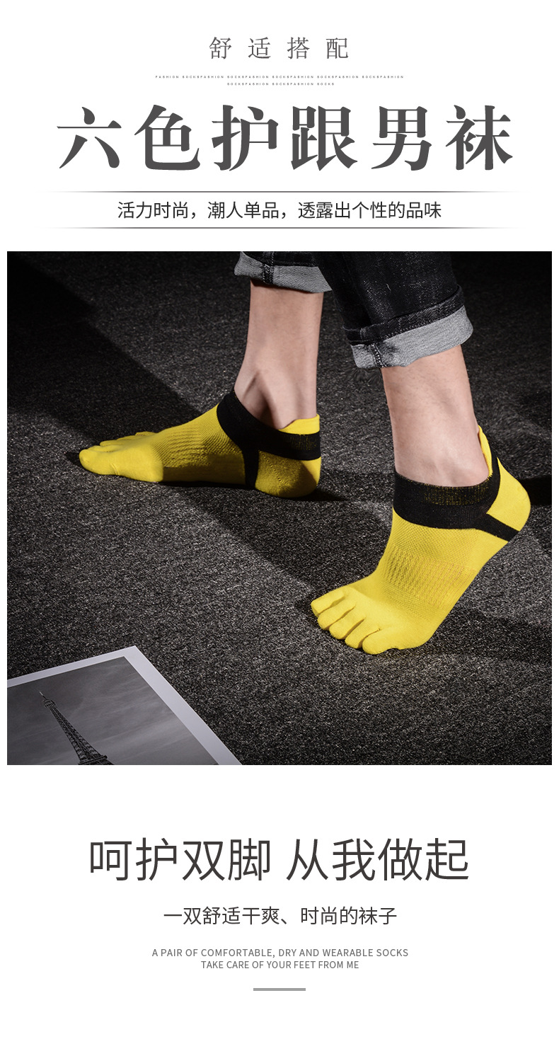 다섯 손가락 양말 봄 여름 가을 보트 양말 남성용 6 색 발 뒤꿈치 보호 성격 발가락 양말 짧은 유행 개성면 양말
