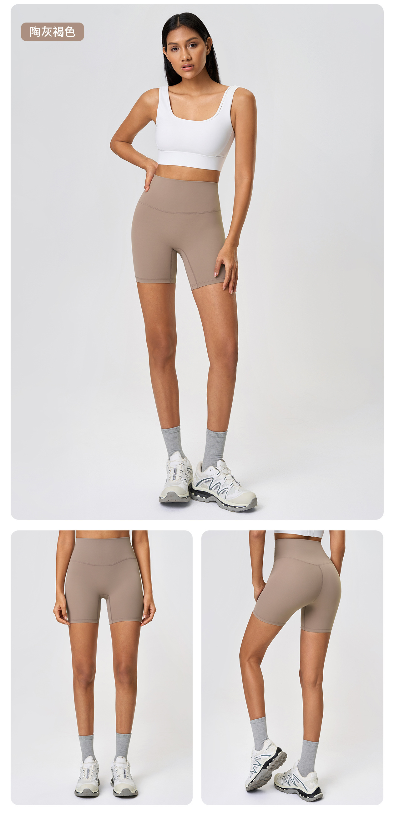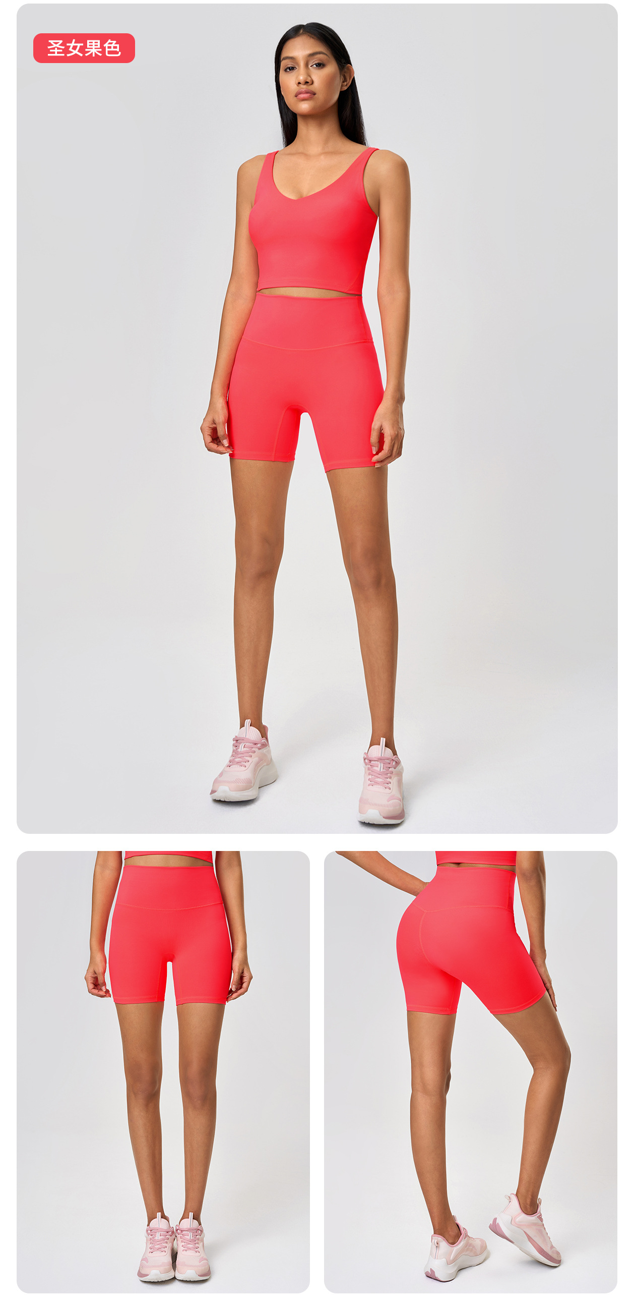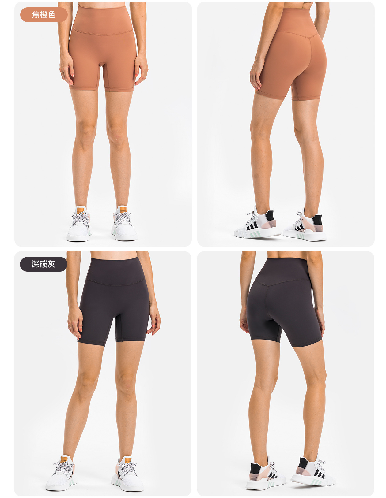 봄과 여름 새로운 T 라인 솔리드 컬러 요가 반바지 양면 샌딩 타이트 스트레치 스포츠 피트니스 바지