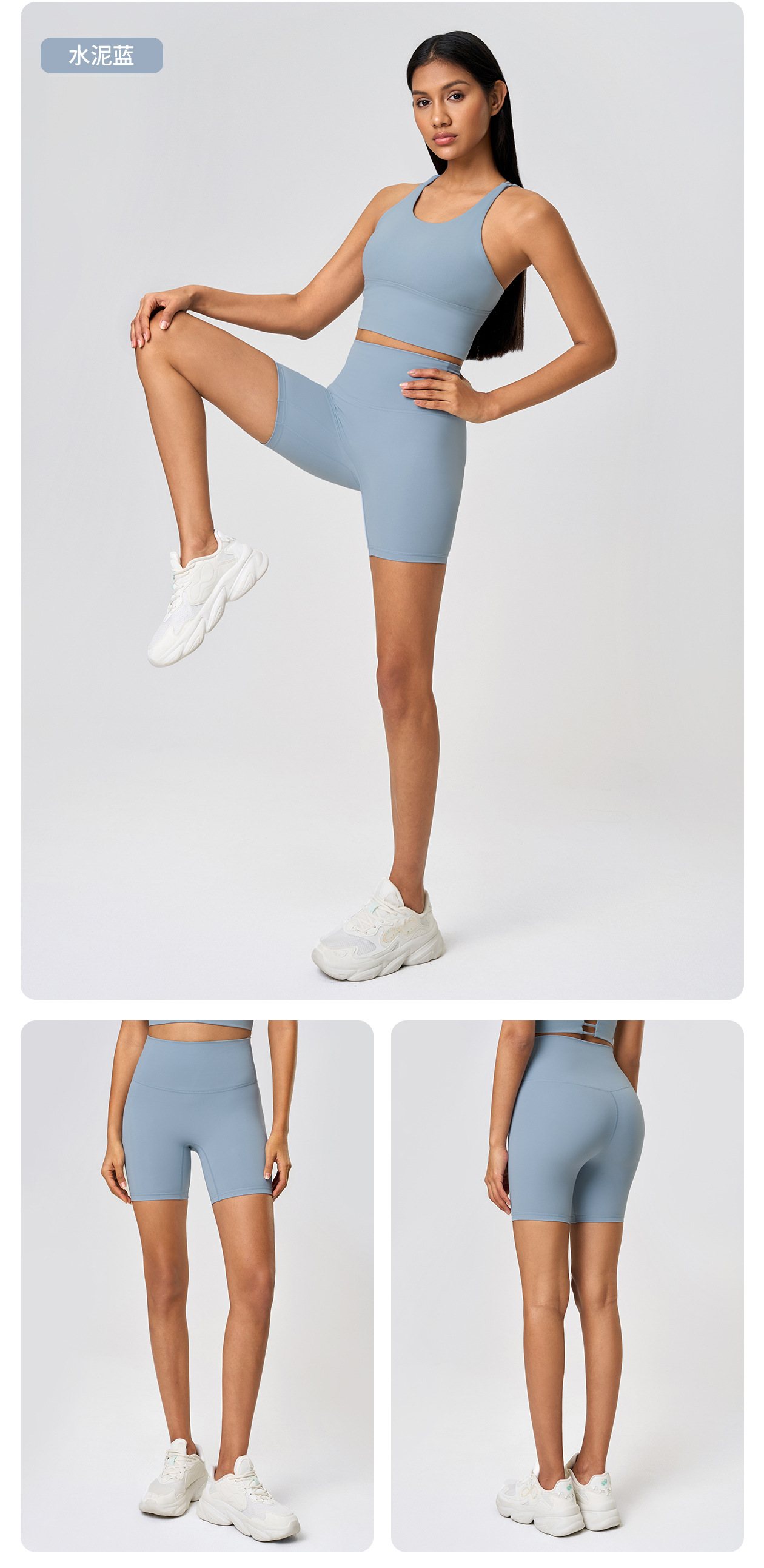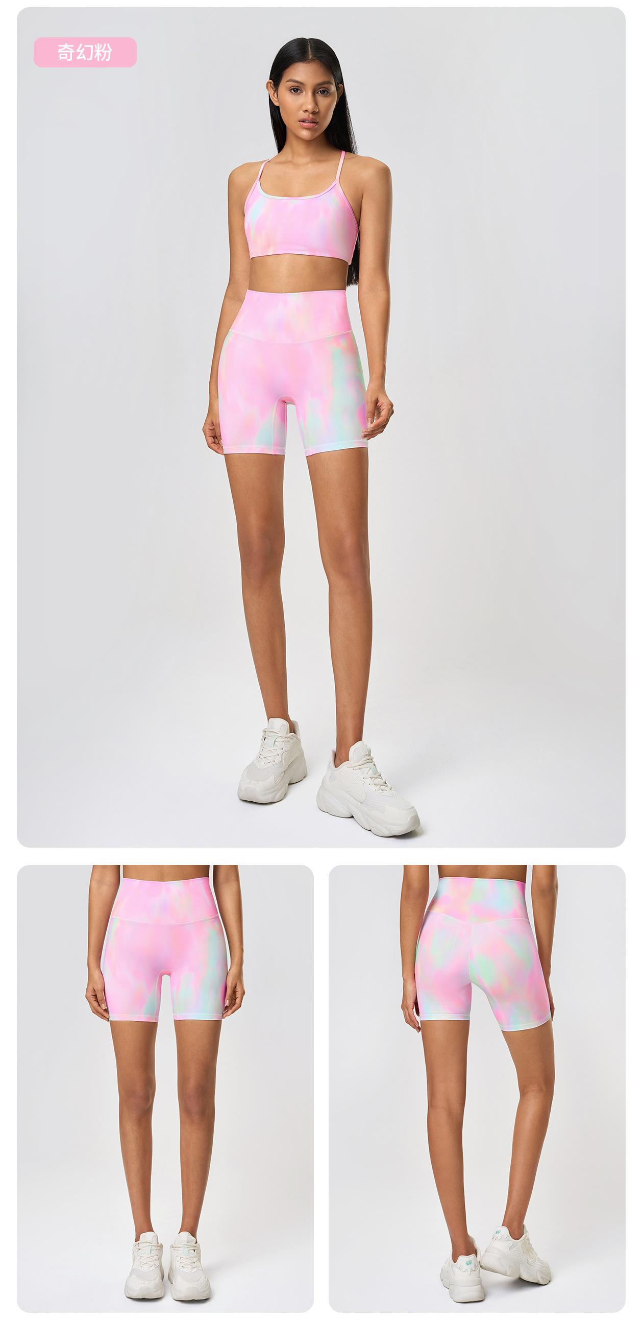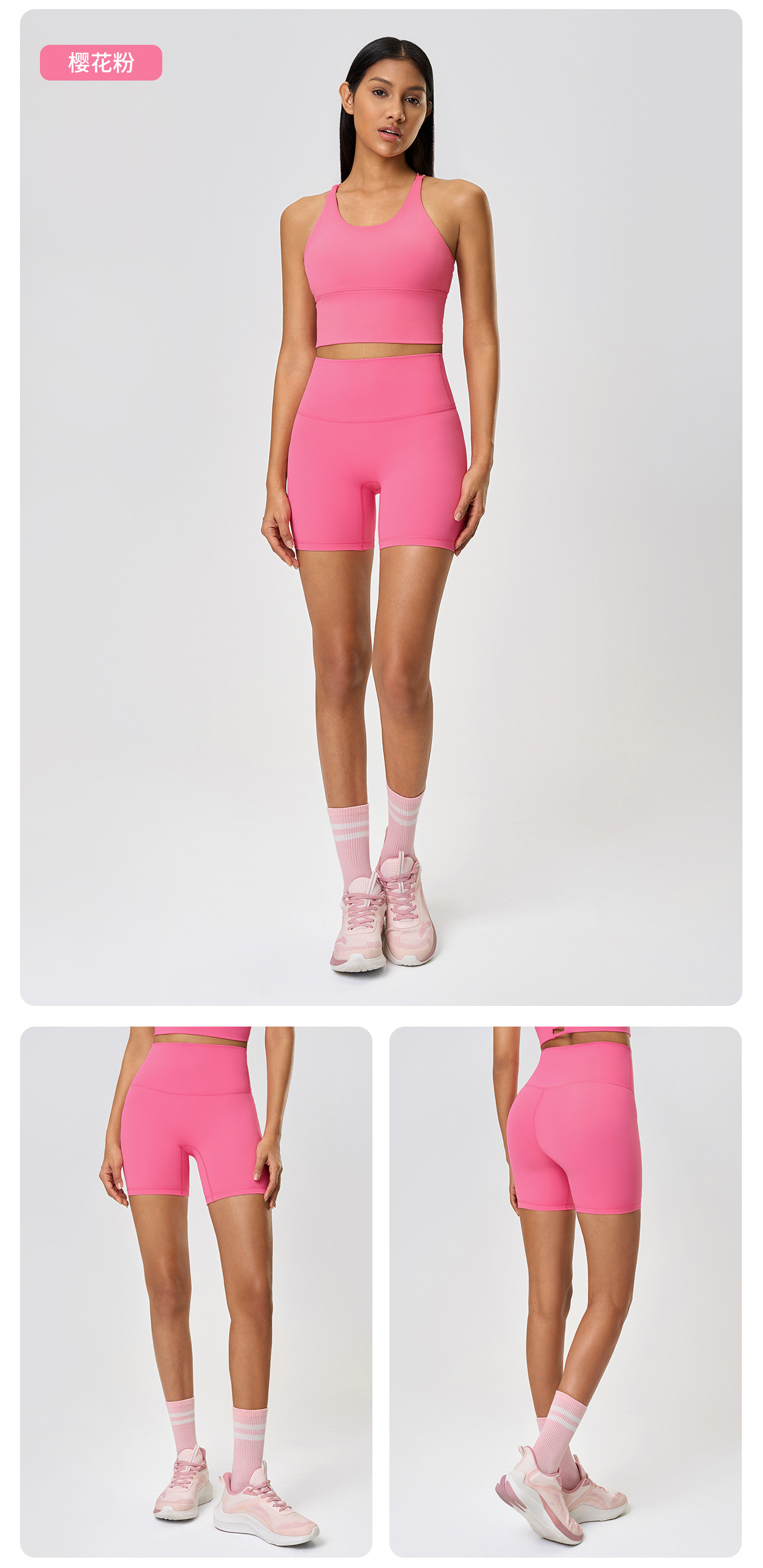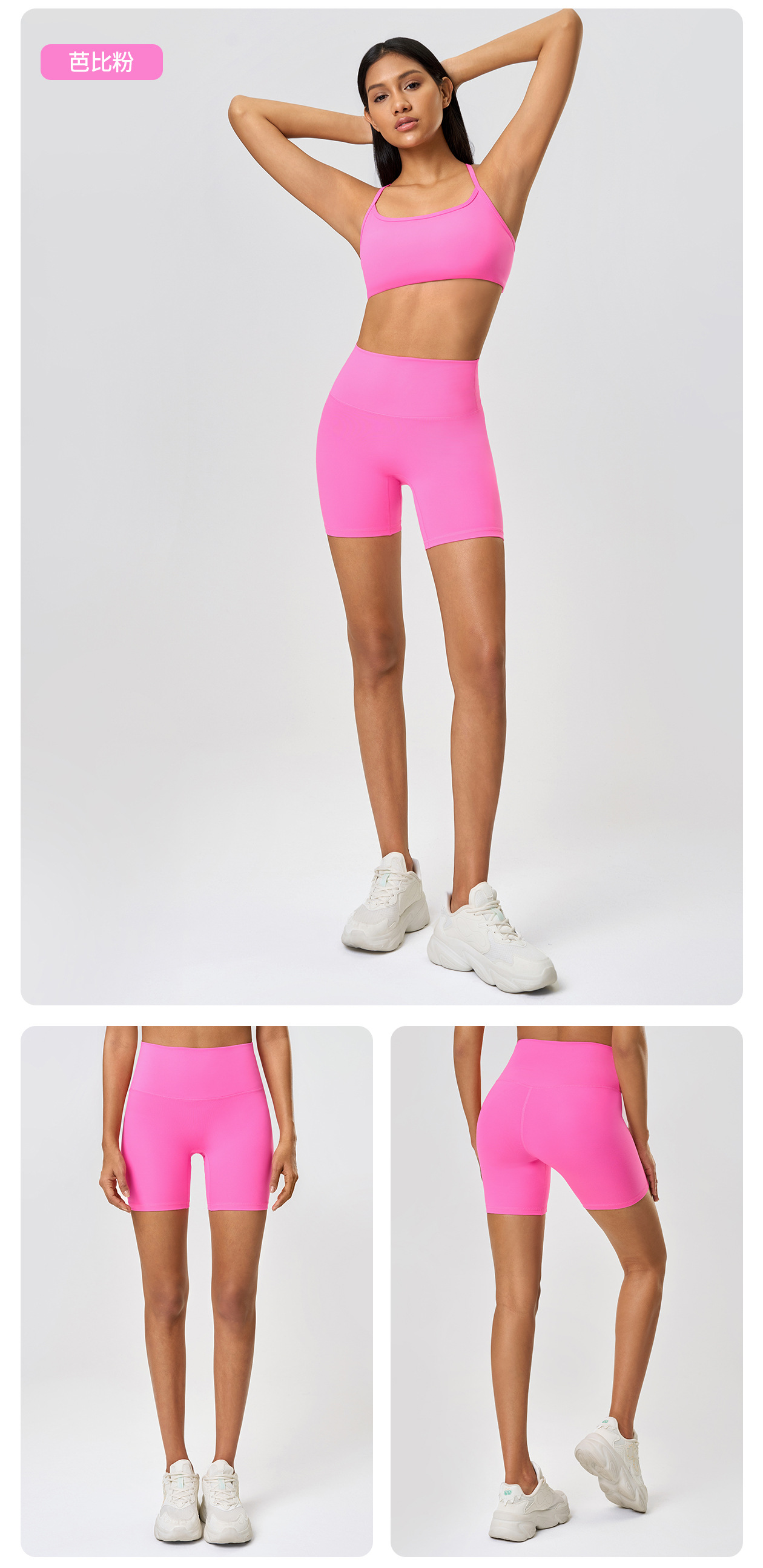봄과 여름 새로운 T 라인 솔리드 컬러 요가 반바지 양면 샌딩 타이트 스트레치 스포츠 피트니스 바지