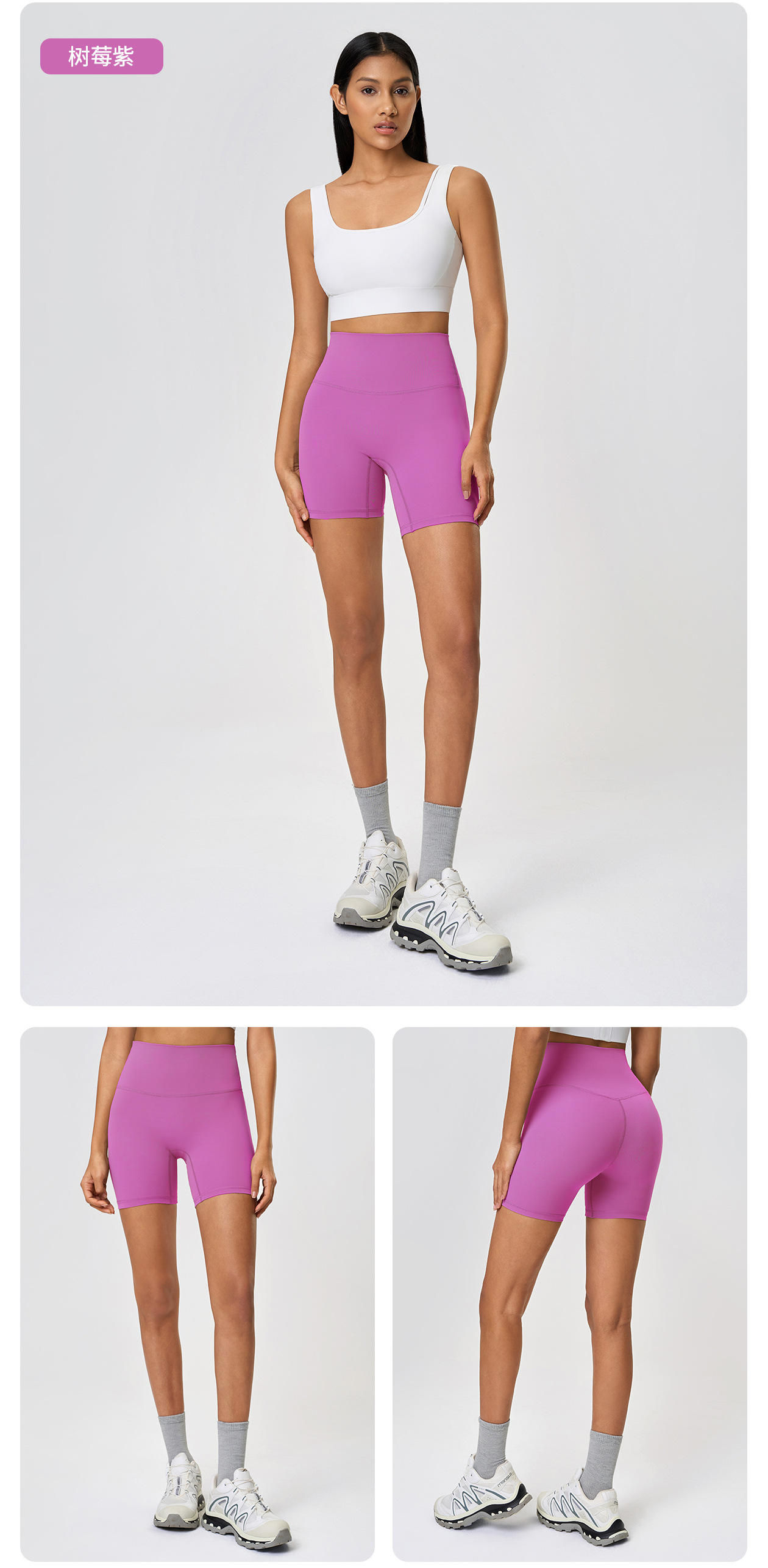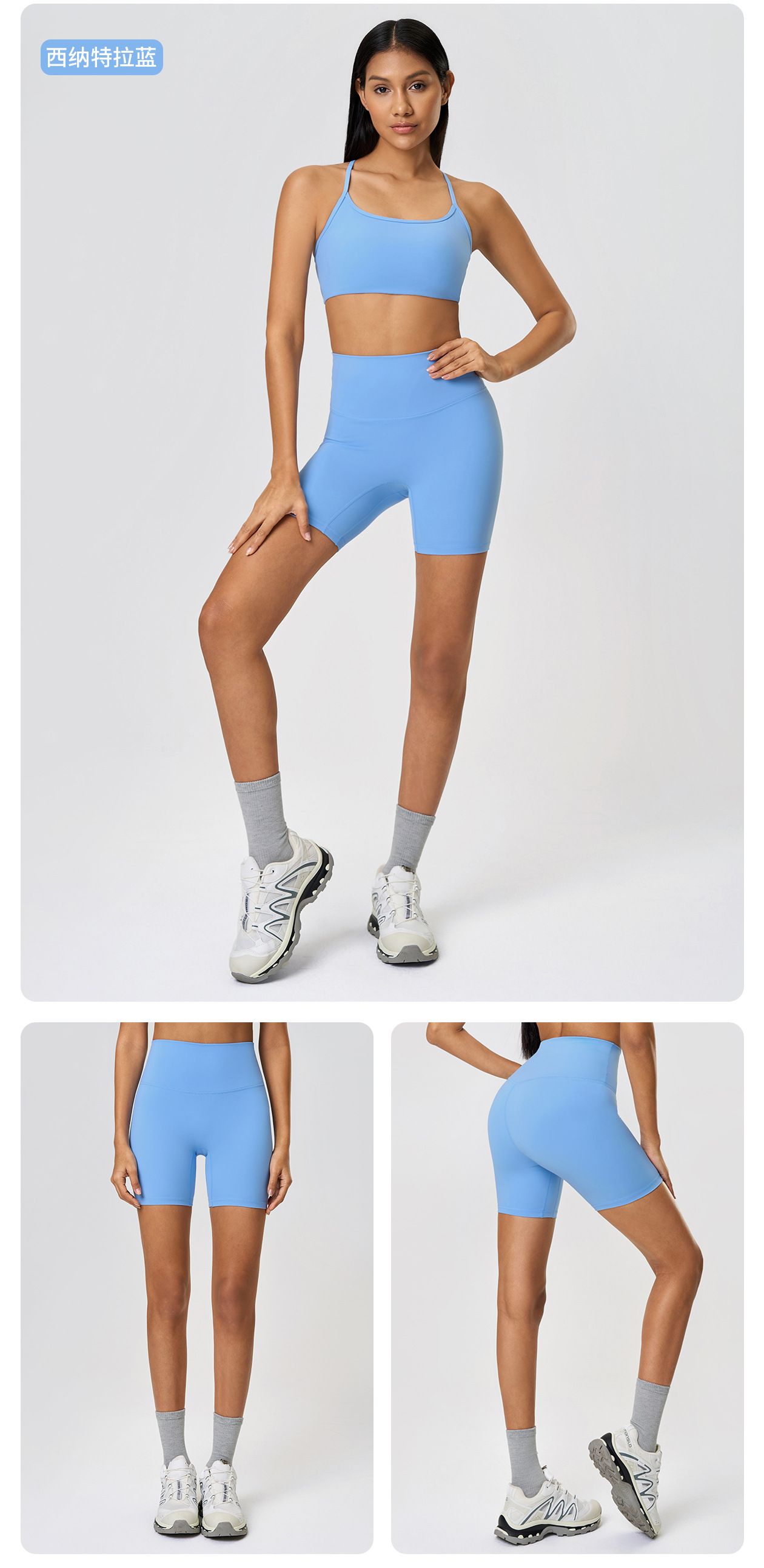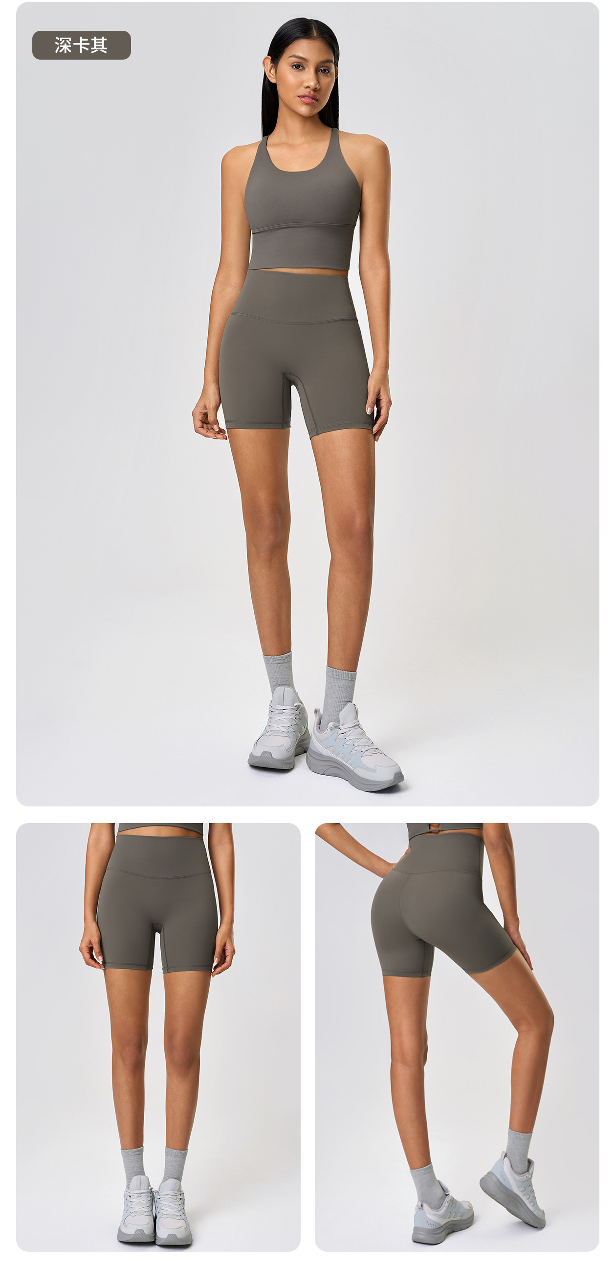봄과 여름 새로운 T 라인 솔리드 컬러 요가 반바지 양면 샌딩 타이트 스트레치 스포츠 피트니스 바지스토어 가기