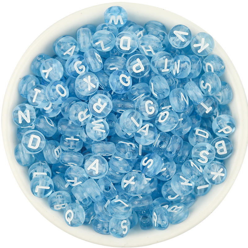 아크릴 컬러 영어 알파벳 구슬 투명 캔디 컬러 편평한 알파벳 구슬 diy 수제 팔찌 느슨한 구슬 액세서리스토어 가기