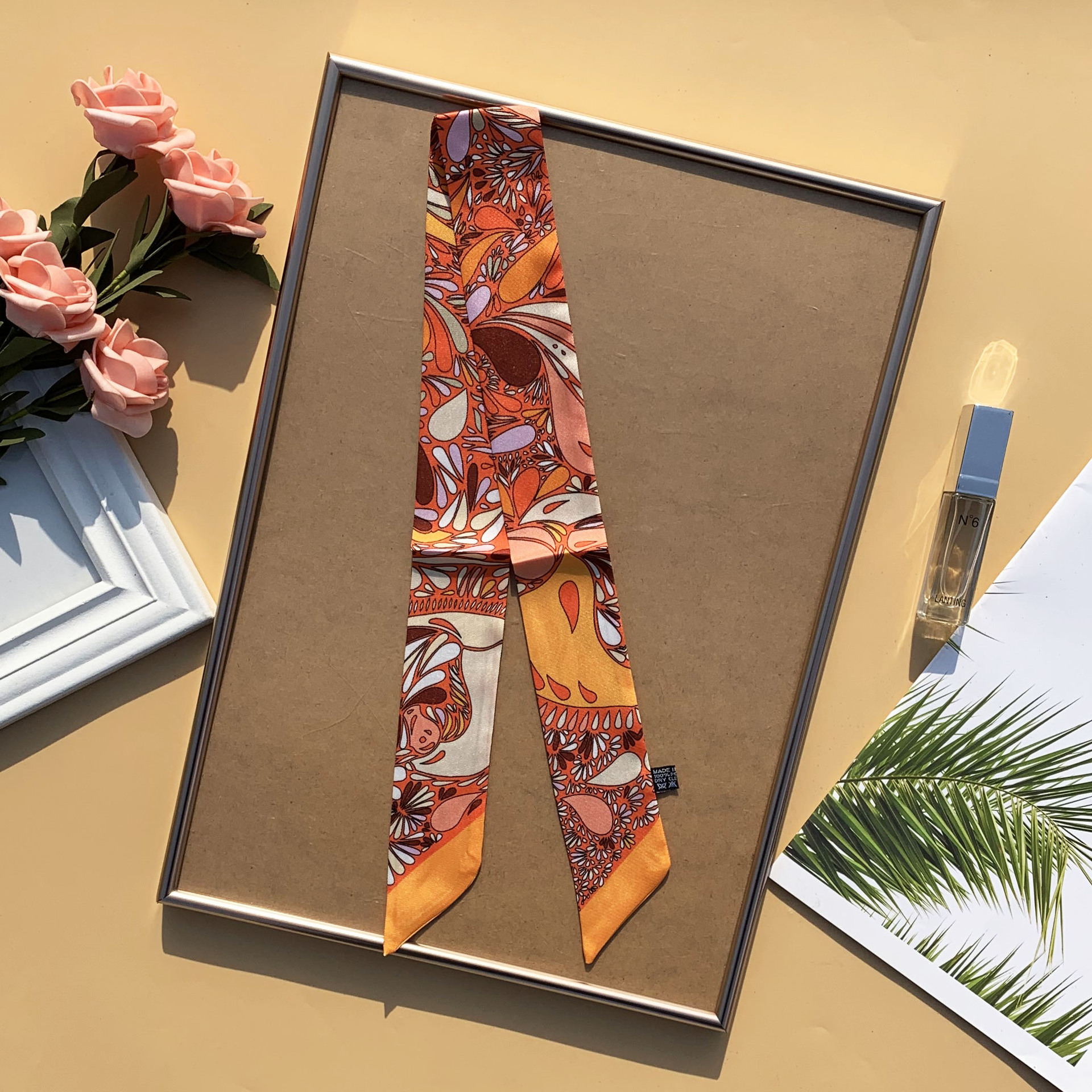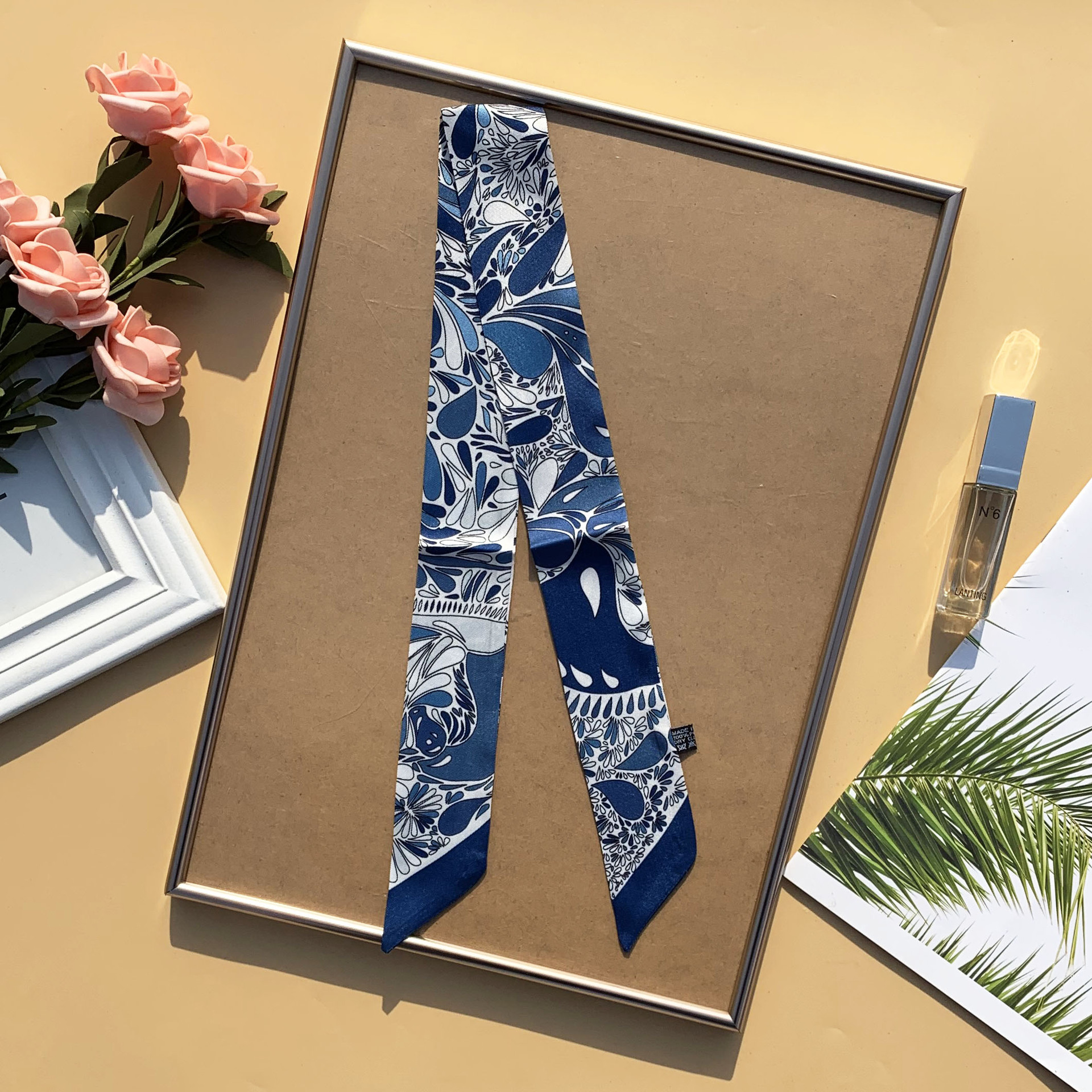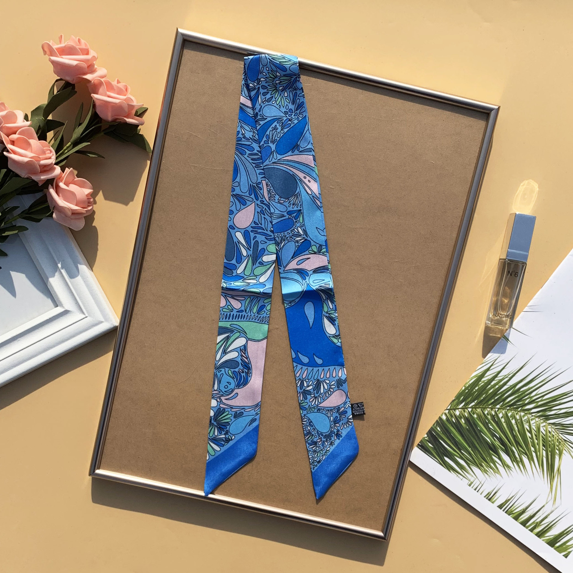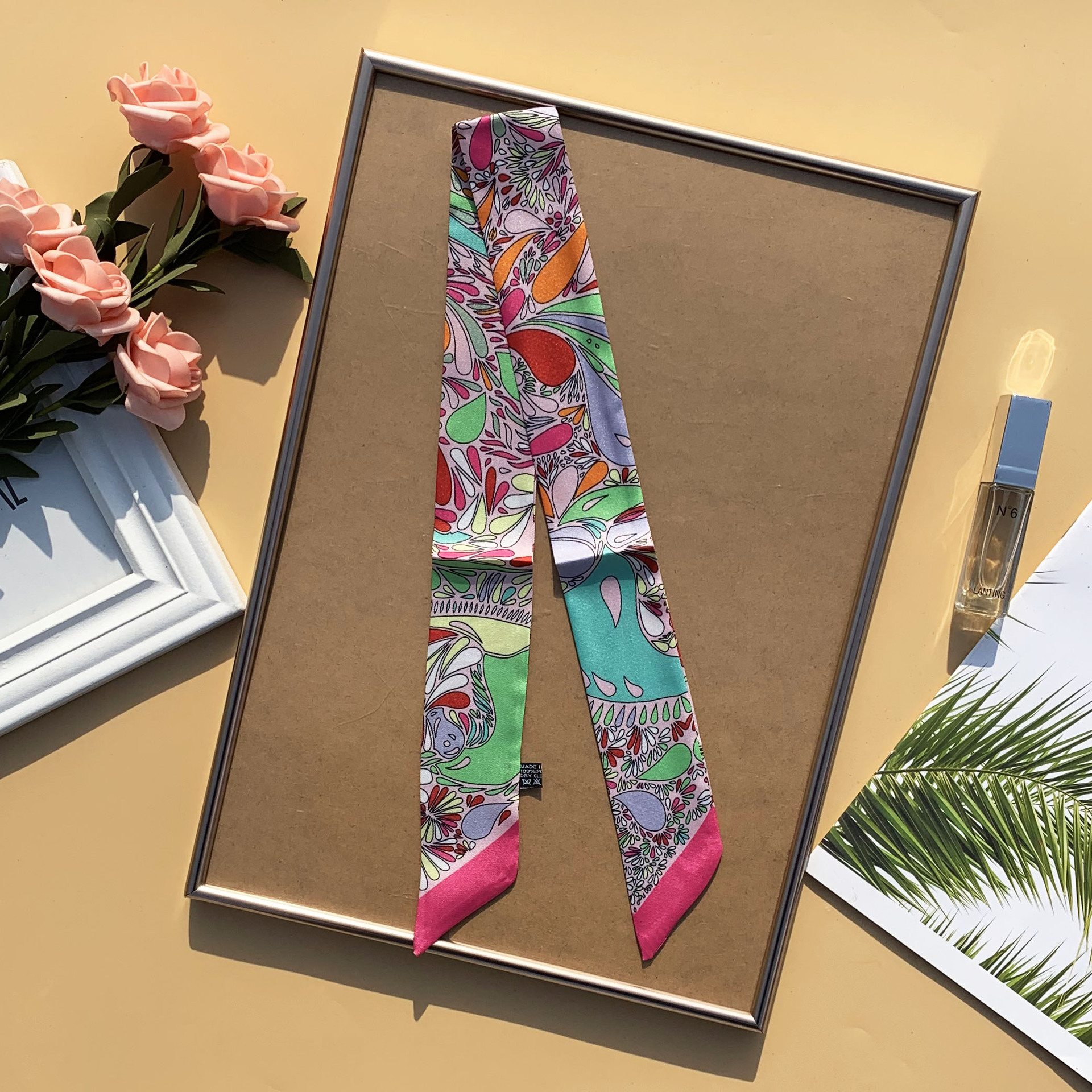 봄과 여름 빈티지 긴 작은 실크 스카프 얇은 좁은 리본 넥타이 가방 리본 헤어 벨트 스카프 여성용 장식 스카프 벨트