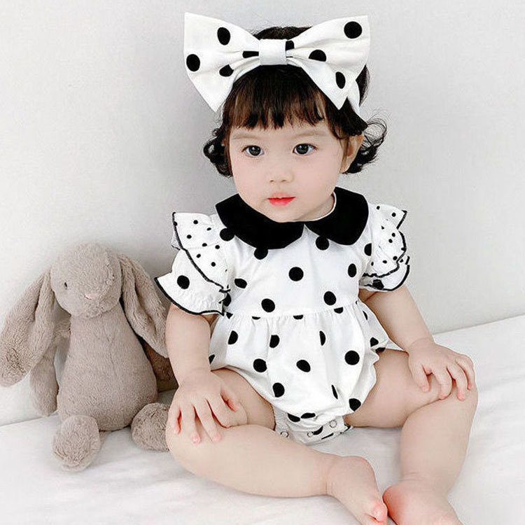 아기 소녀의 한국어 버전 귀여운 인형 물방울 무늬 하 옷 가을 순수한 아기 방귀 코트에 따라 백 일 세트 옷스토어 가기