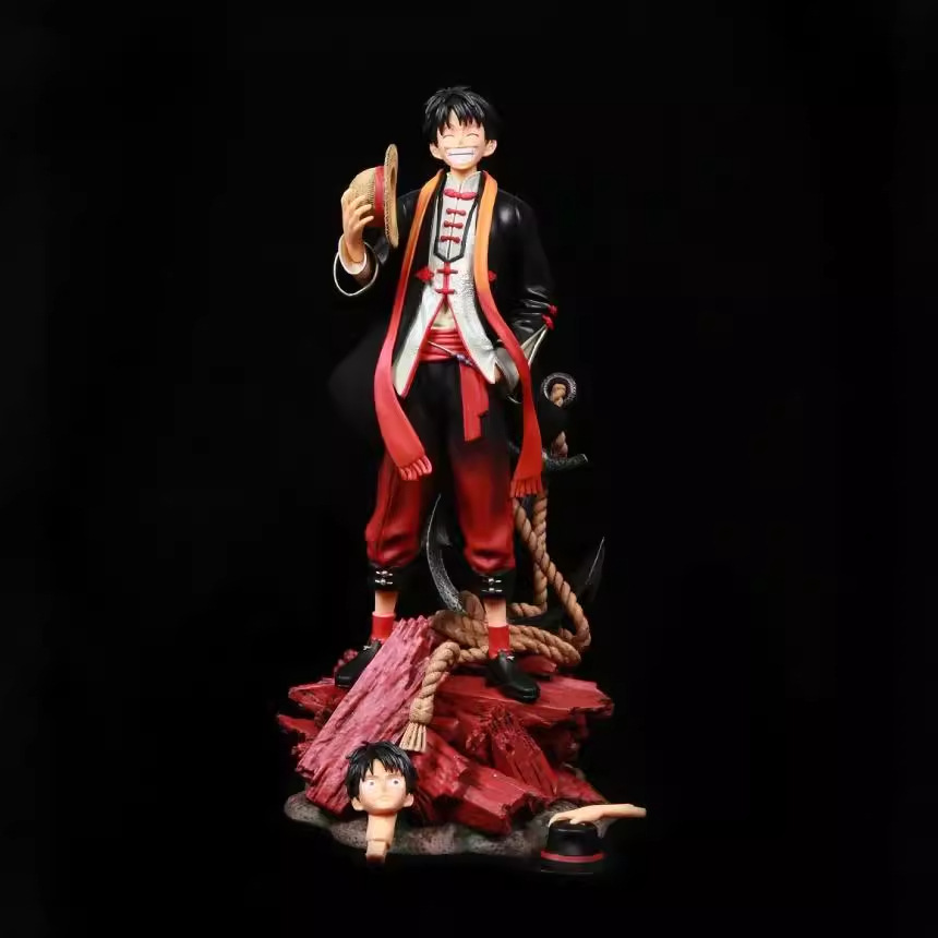 动漫批发 海贼王 GK 中国风 路飞 唐装 可换头 雕像 模型盒装手办