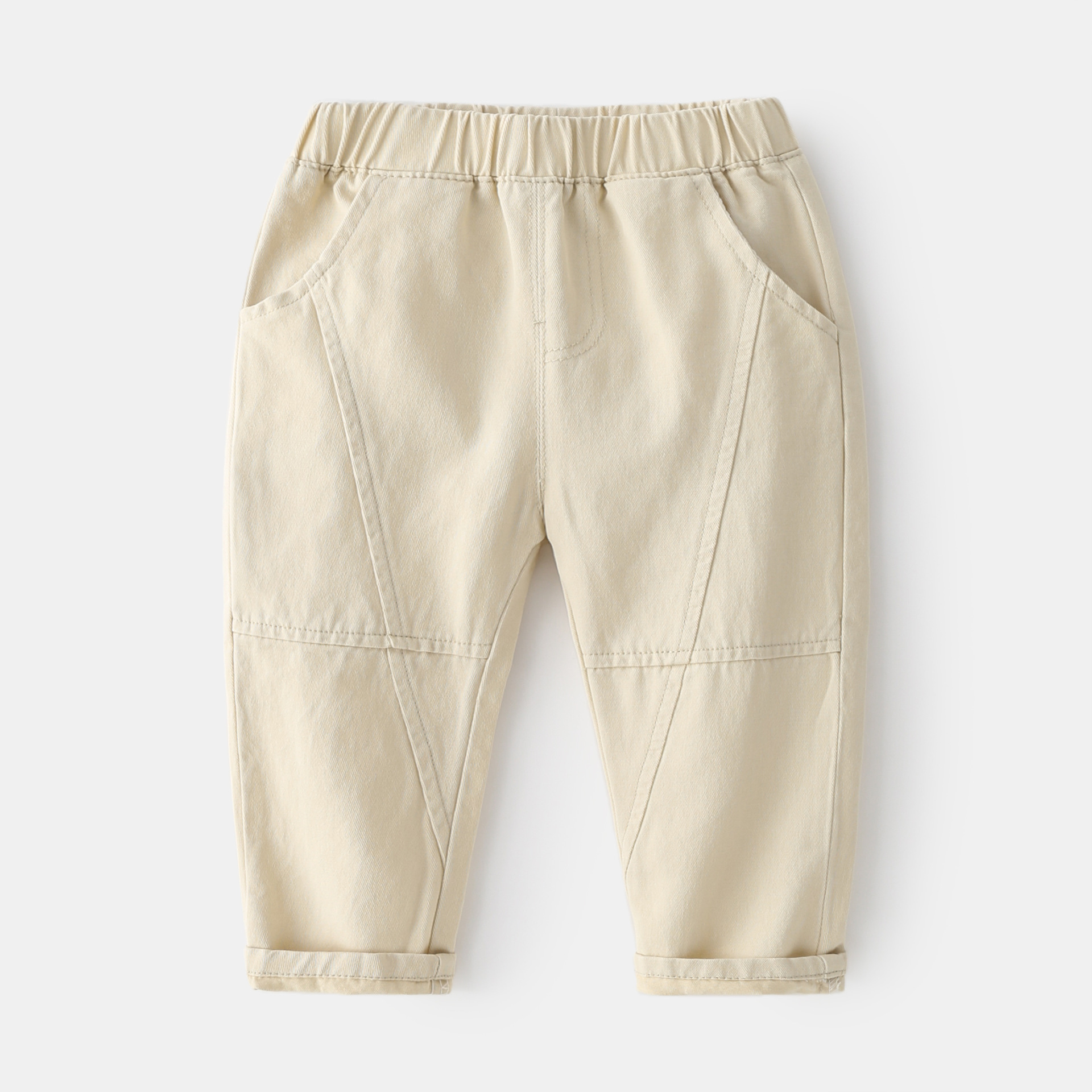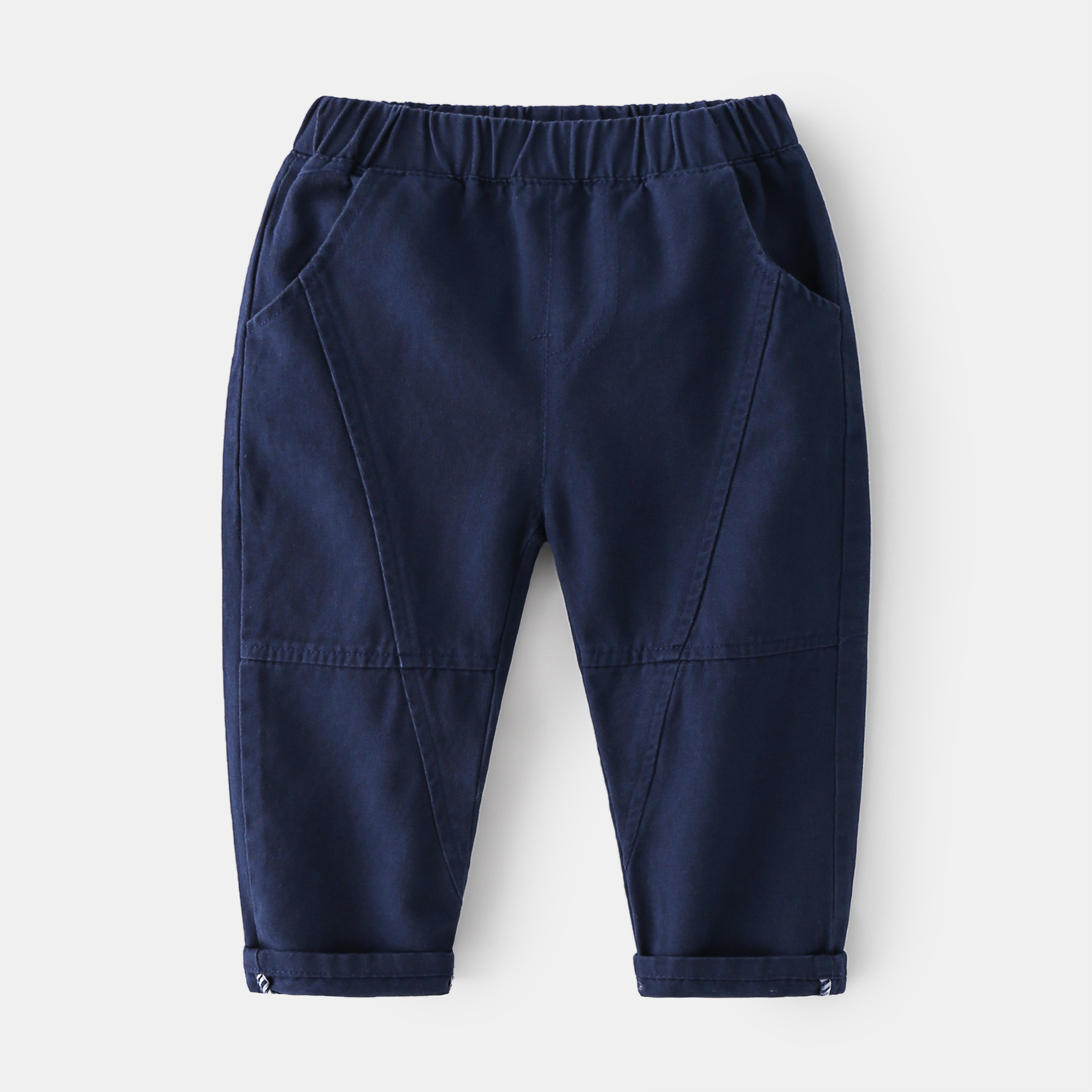 한국 스타일 중소형 소년을위한 유행 중간 허리 바지 봄 캐주얼 바지 편안한 부드러운 면 롱 캐주얼 바지