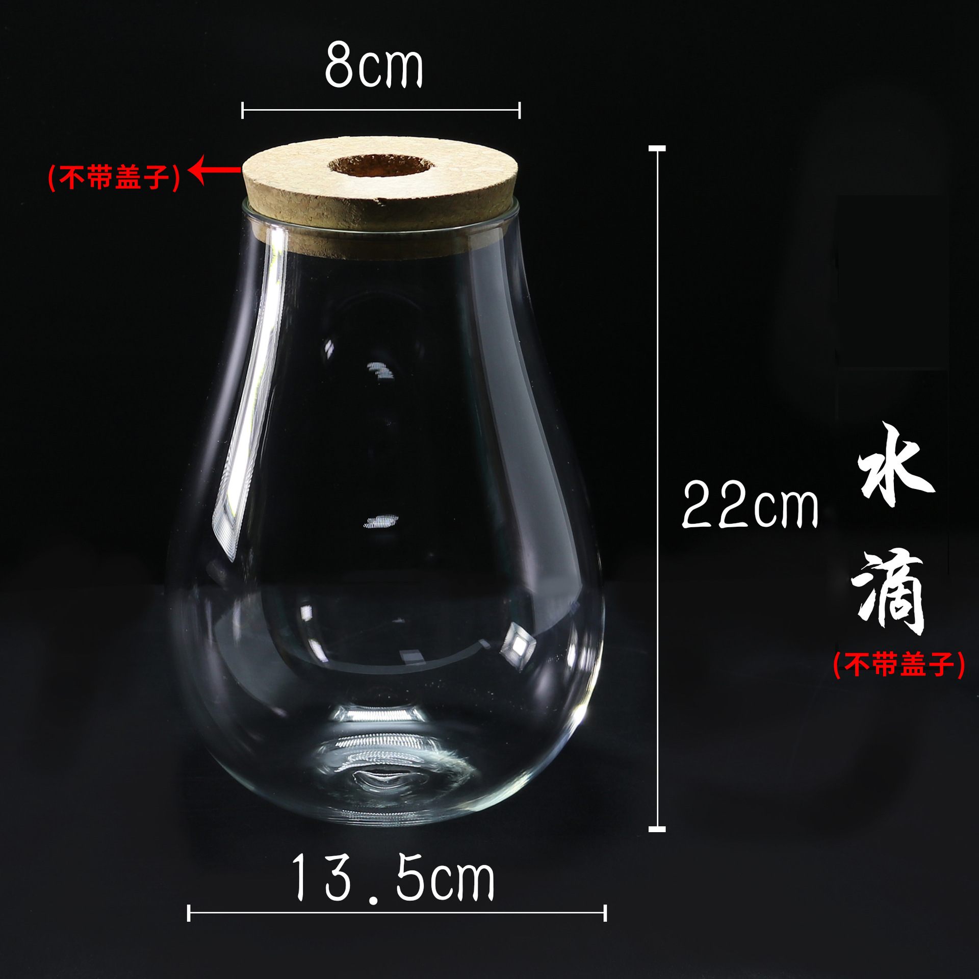 水滴生态瓶尺寸:瓶口径8厘米 底径13.5厘米 高22厘米