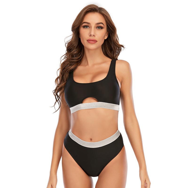 2021 유럽과 미국 국경 간 새로운 단색 수영복 여성용 리본 삼각형 스플릿 수영복 아마존 대외 무역 tankini스토어 가기