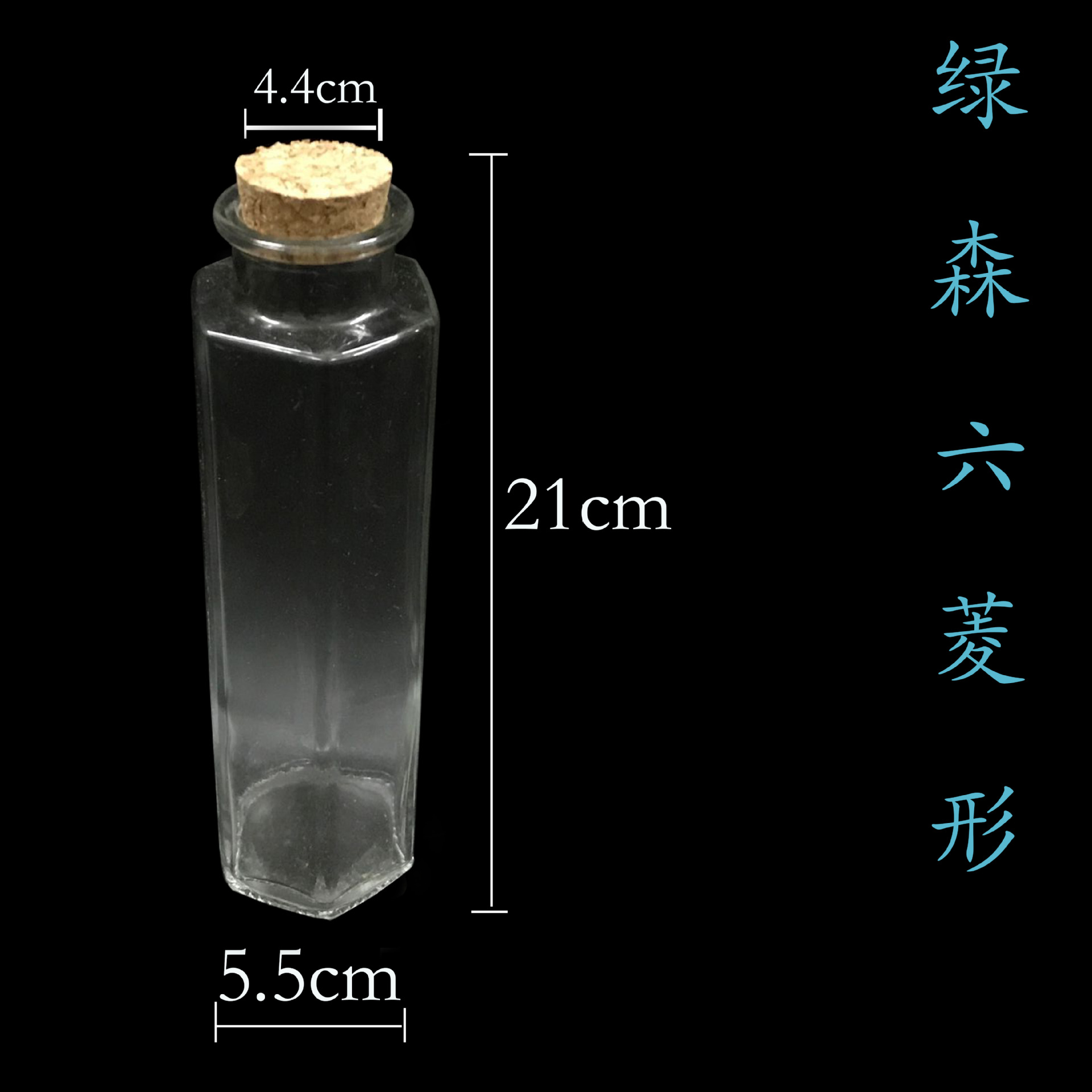 绿森六菱形生态瓶尺寸:瓶口径4.4厘米 底径5.5厘米 高21厘米