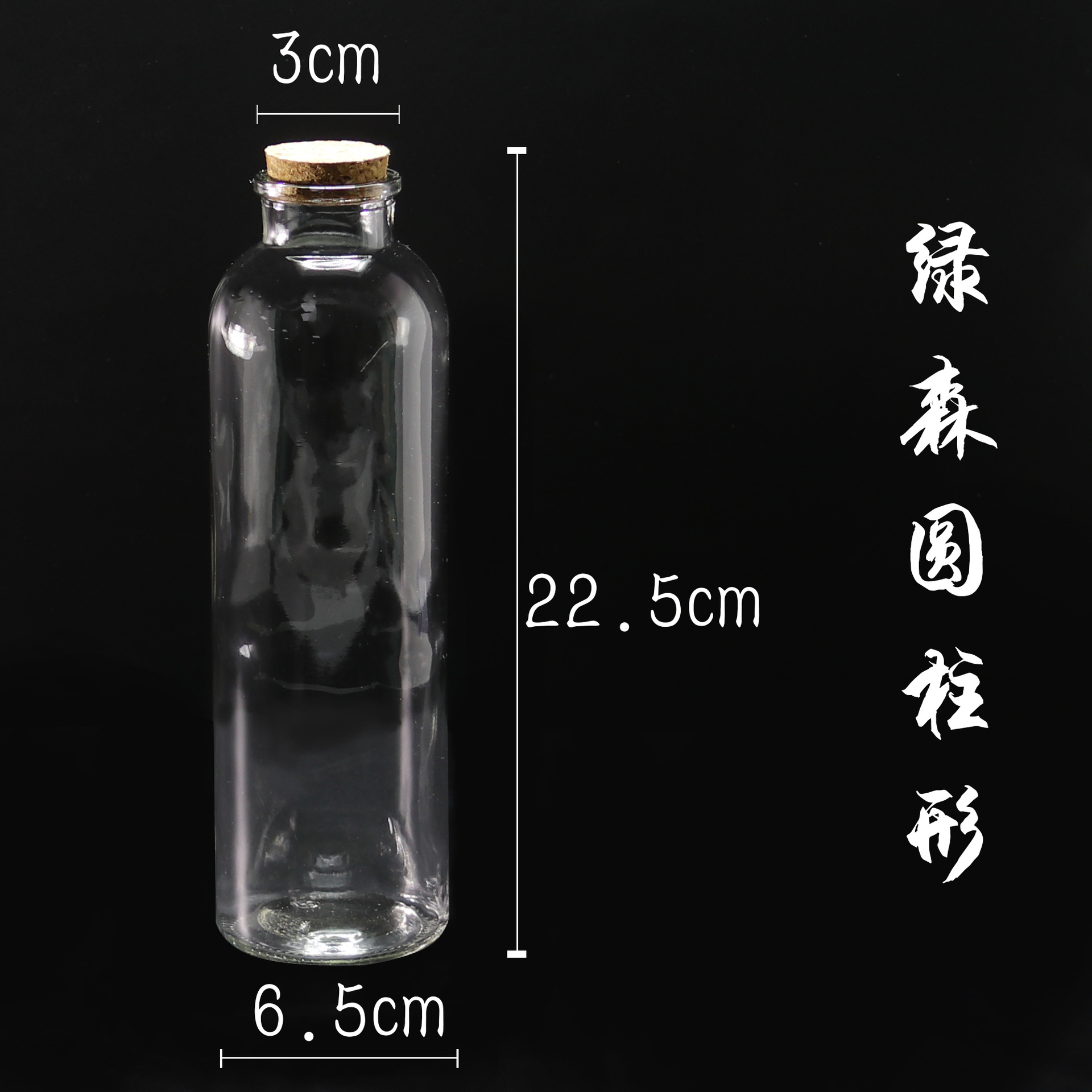 绿森圆柱形生态瓶尺寸:瓶口径3厘米 底径6.5厘米 高22.5厘米