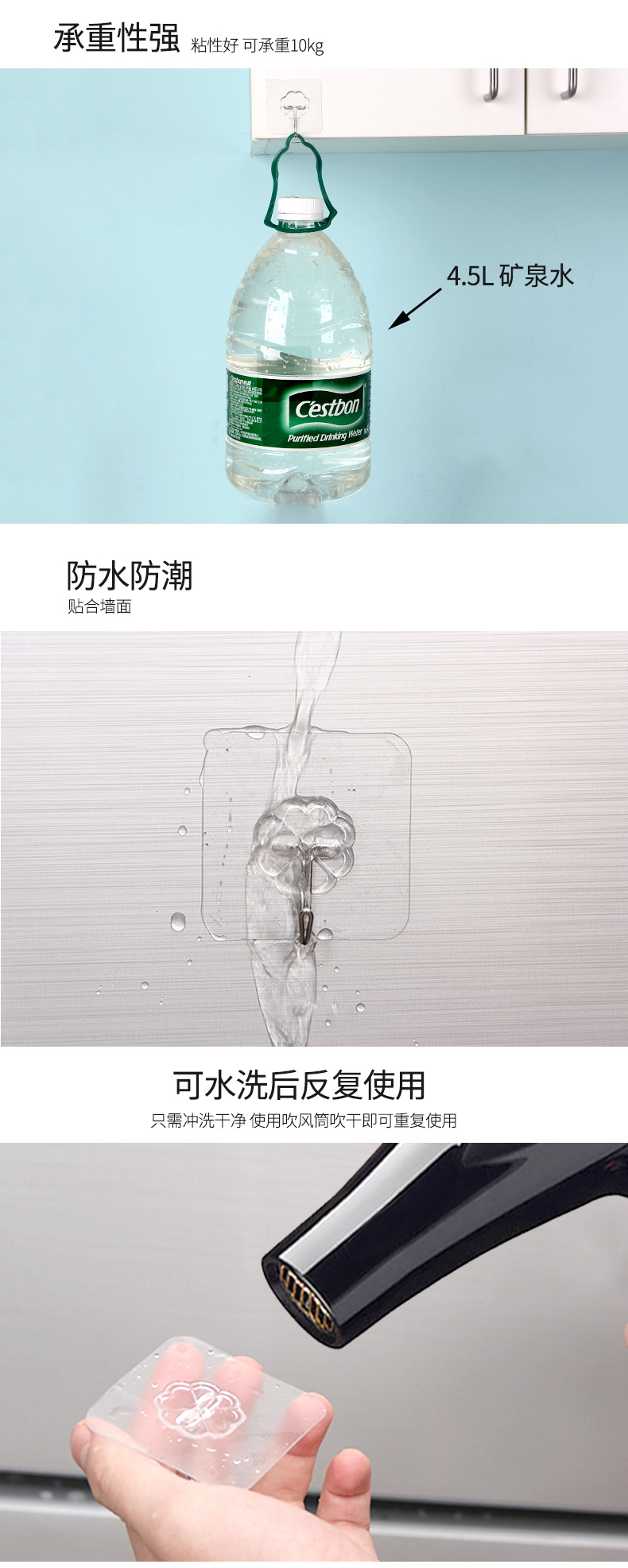 후크 강한 접착 벽 벽에 걸려있는 벽로드 베어링 흡입 컵 표시가없는 네일 랙 주방 구멍이 뚫린 후크 도매