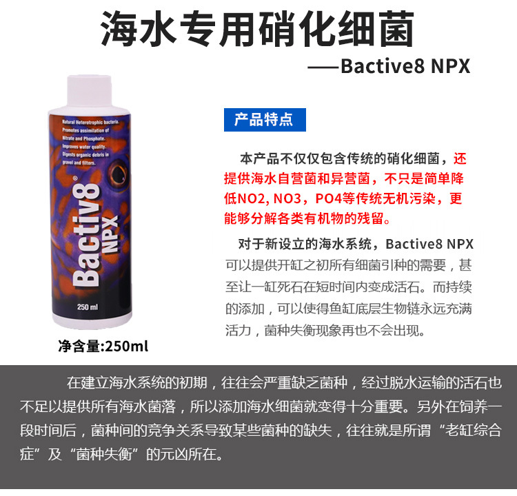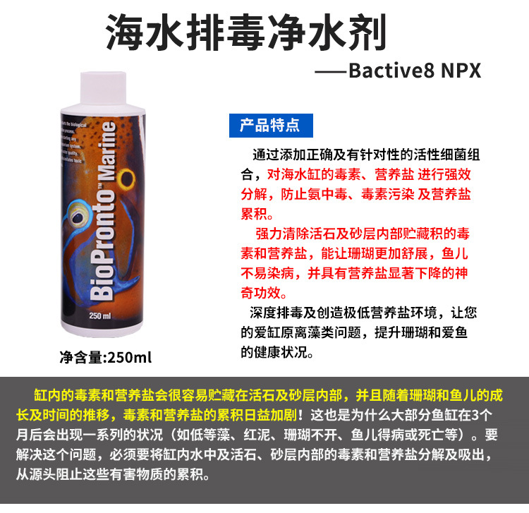미국의 작은 물고기 2 마리, BioPronto 해양 정수제, 질산화균, 생균, 해병 탱크 균주 등