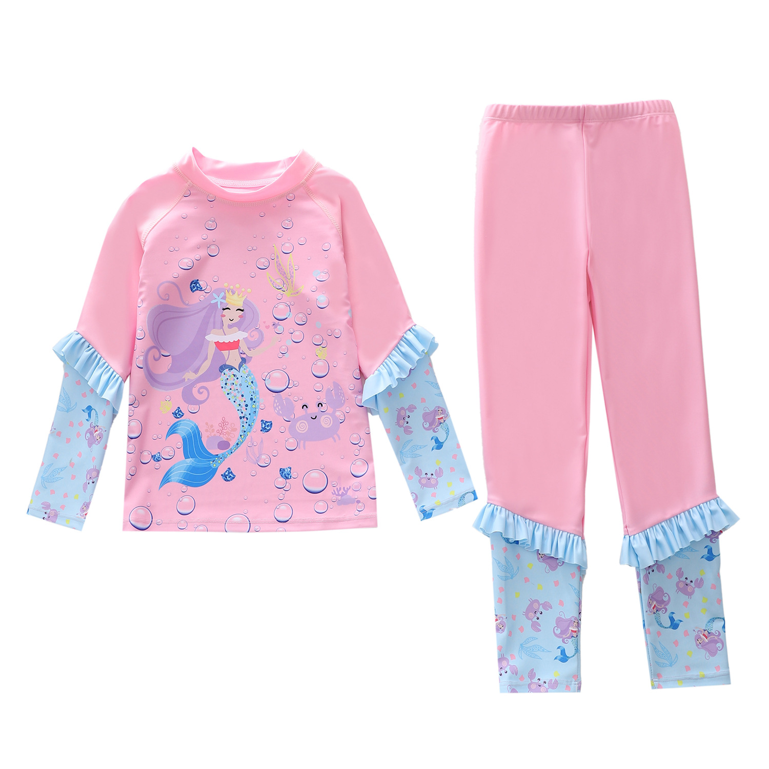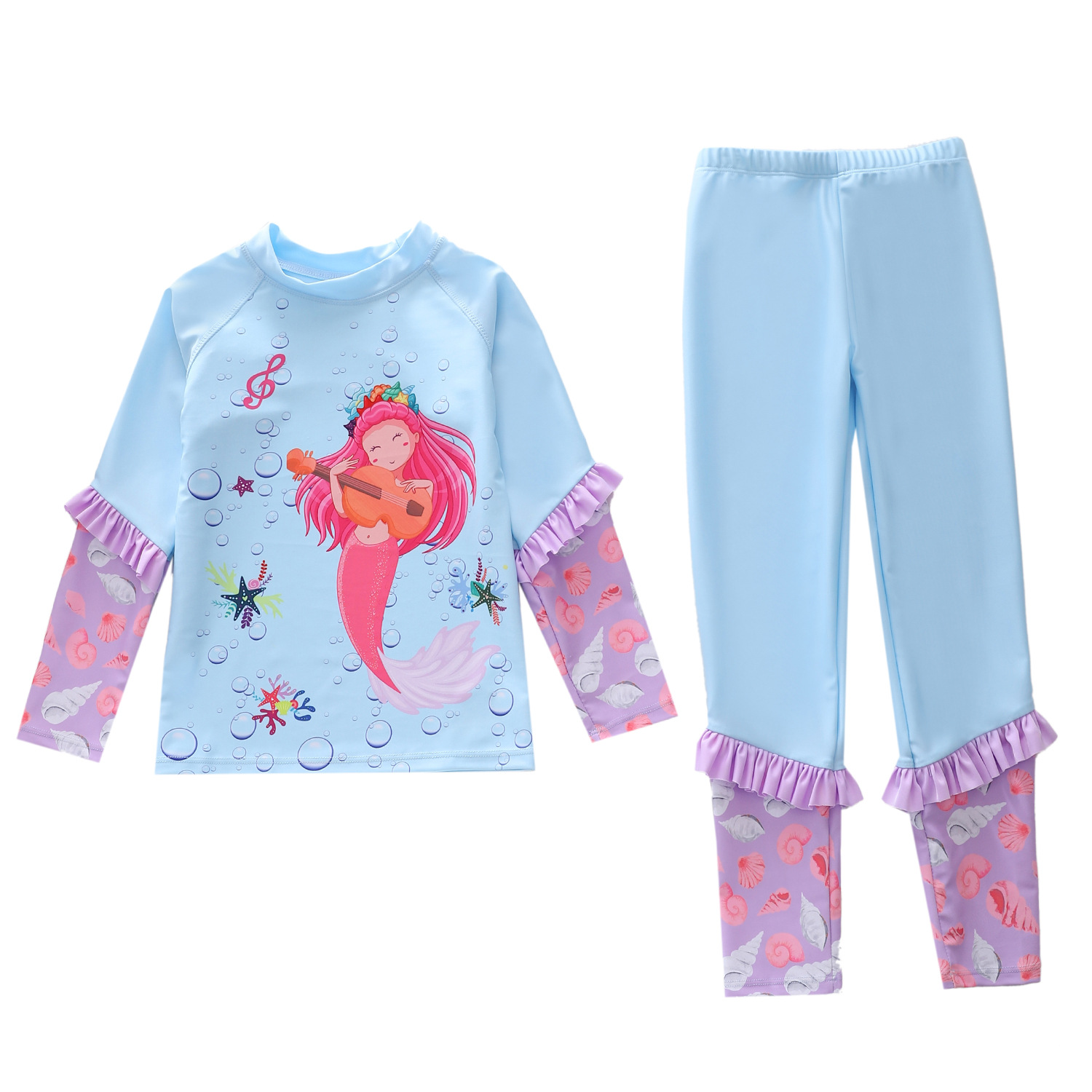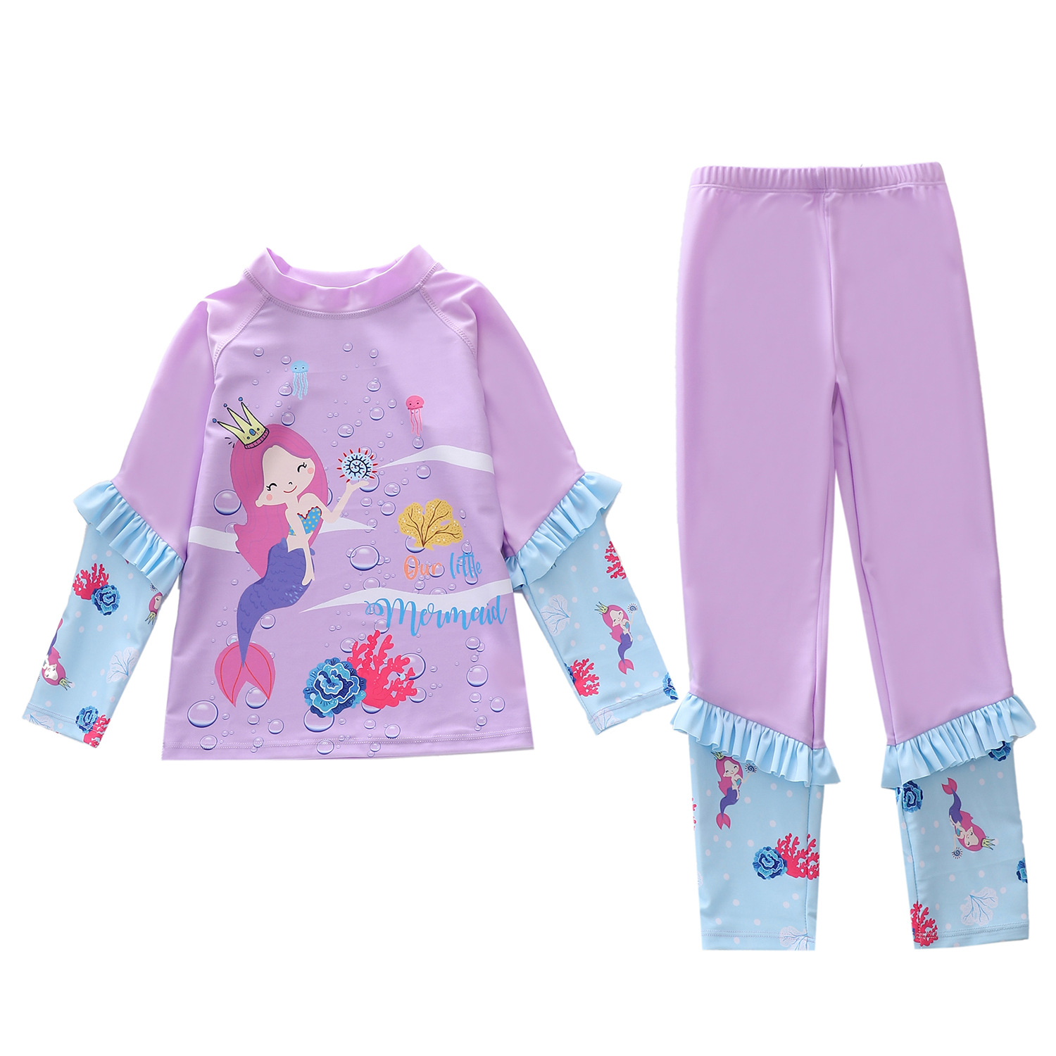 새로운 어린이 수영복 여성용 원피스 긴팔 바지 2 피스 대형 어린이 및 소녀 수영복을위한 자외선 차단제 서핑 수영복