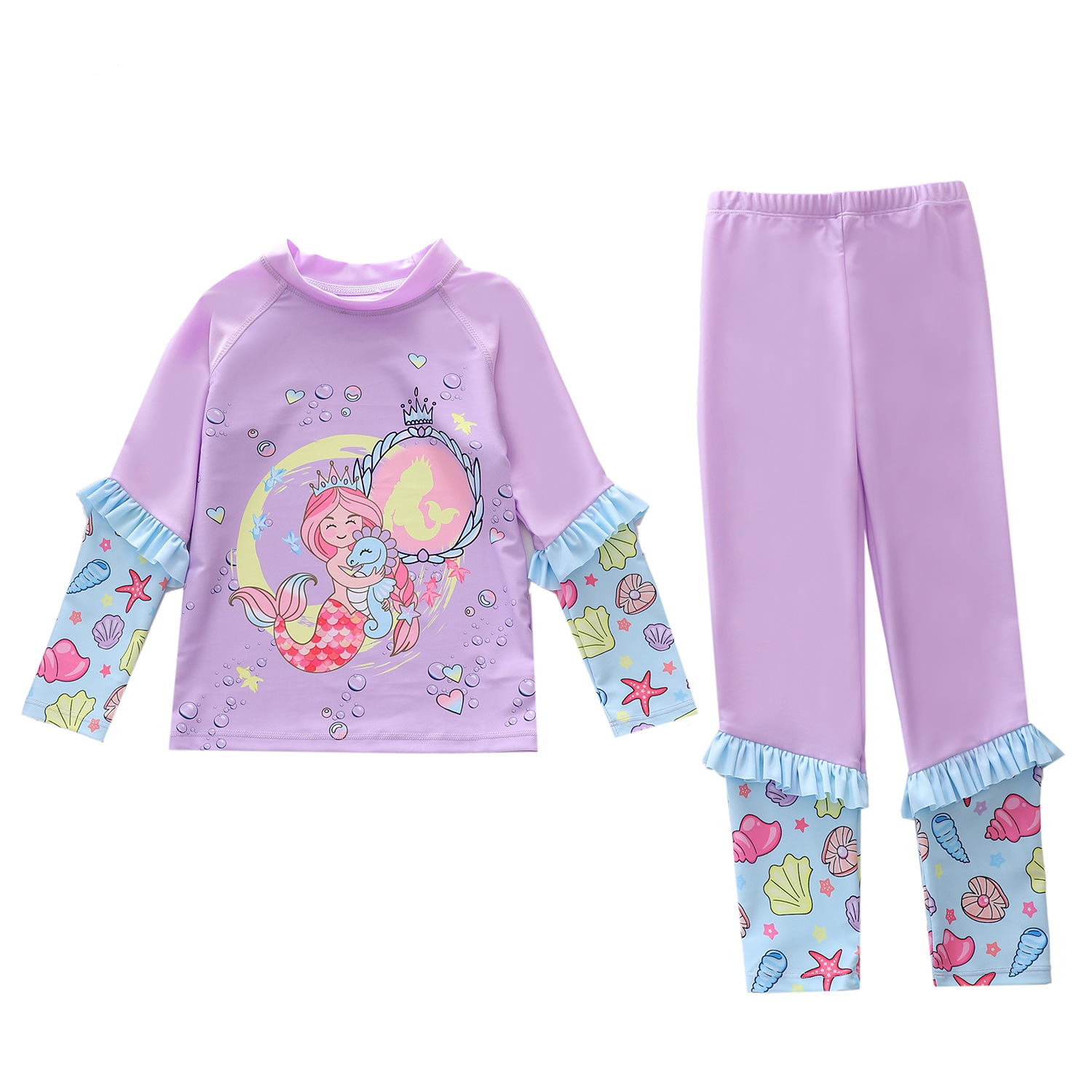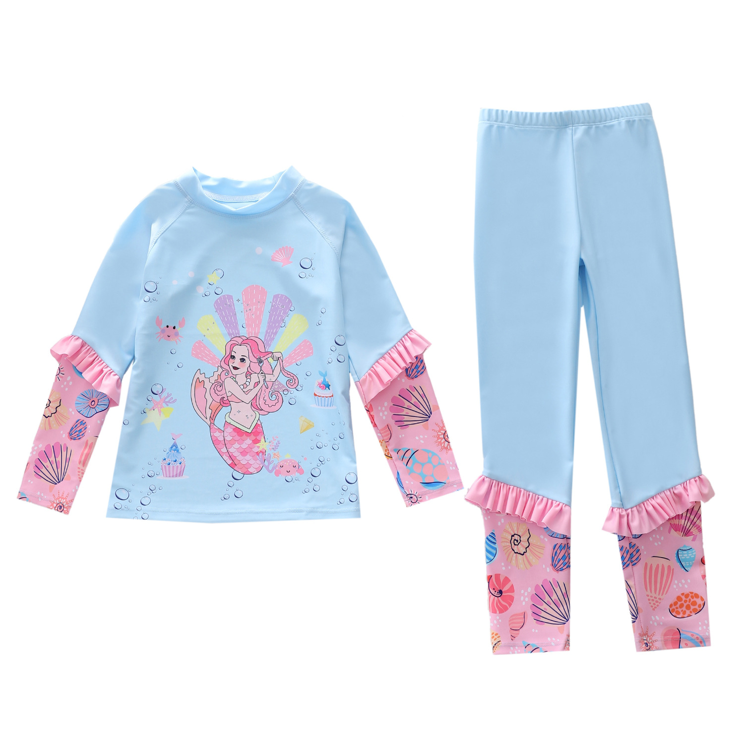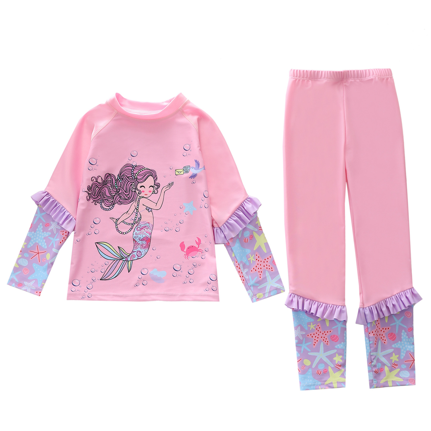새로운 어린이 수영복 여성용 원피스 긴팔 바지 2 피스 대형 어린이 및 소녀 수영복을위한 자외선 차단제 서핑 수영복