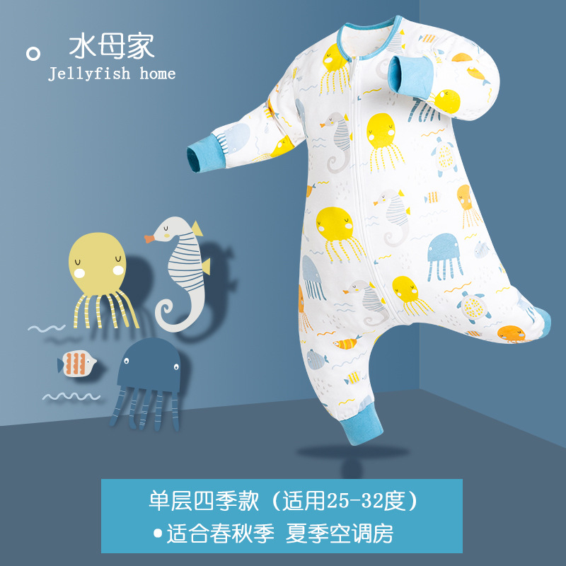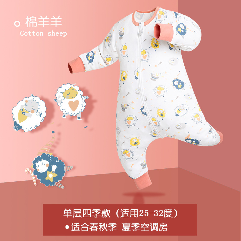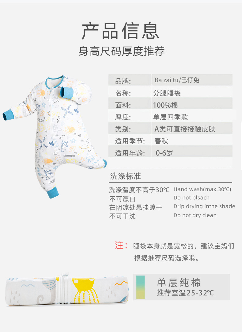 巴仔兔婴儿纯棉单层春秋款四季通用宝宝防踢被神夏器儿童分腿睡袋