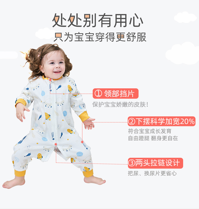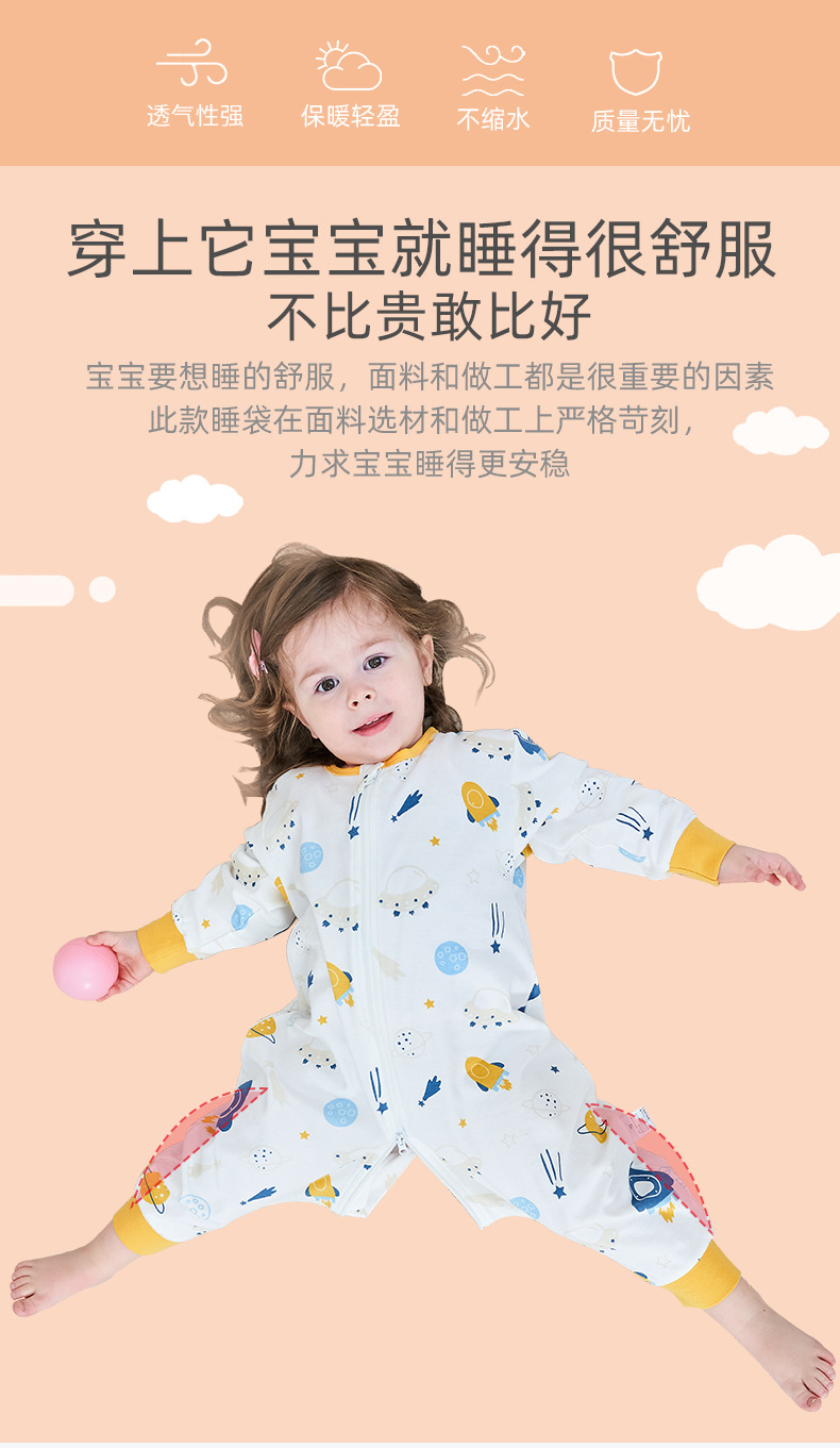캔디 테디 아기 순면 긴팔 봄가을용 사계절 사용 가능 아기 발차기 방지 이불 어린이 다리 분리형 수면조끼스토어 가기