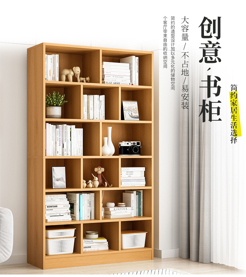 간단한 책장 바닥 다층 저장 캐비닛 조합 창조적 인 나무 저장 선반 가정용 어린이 책장