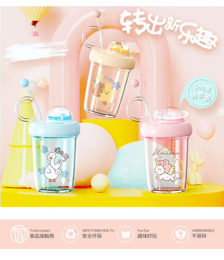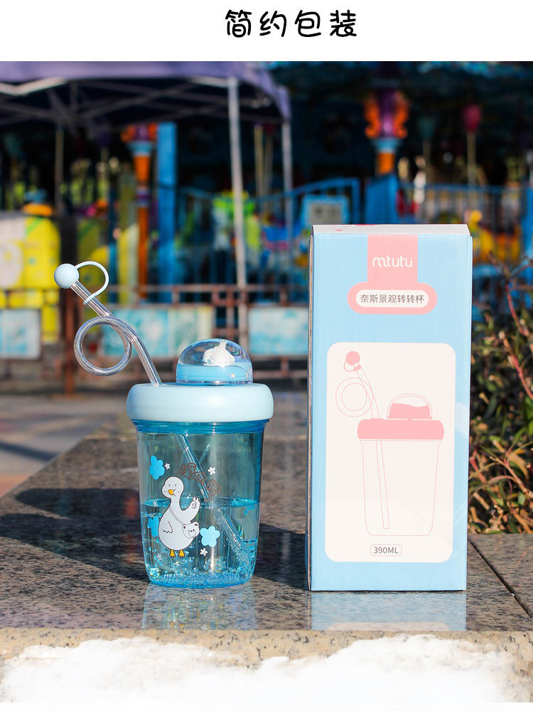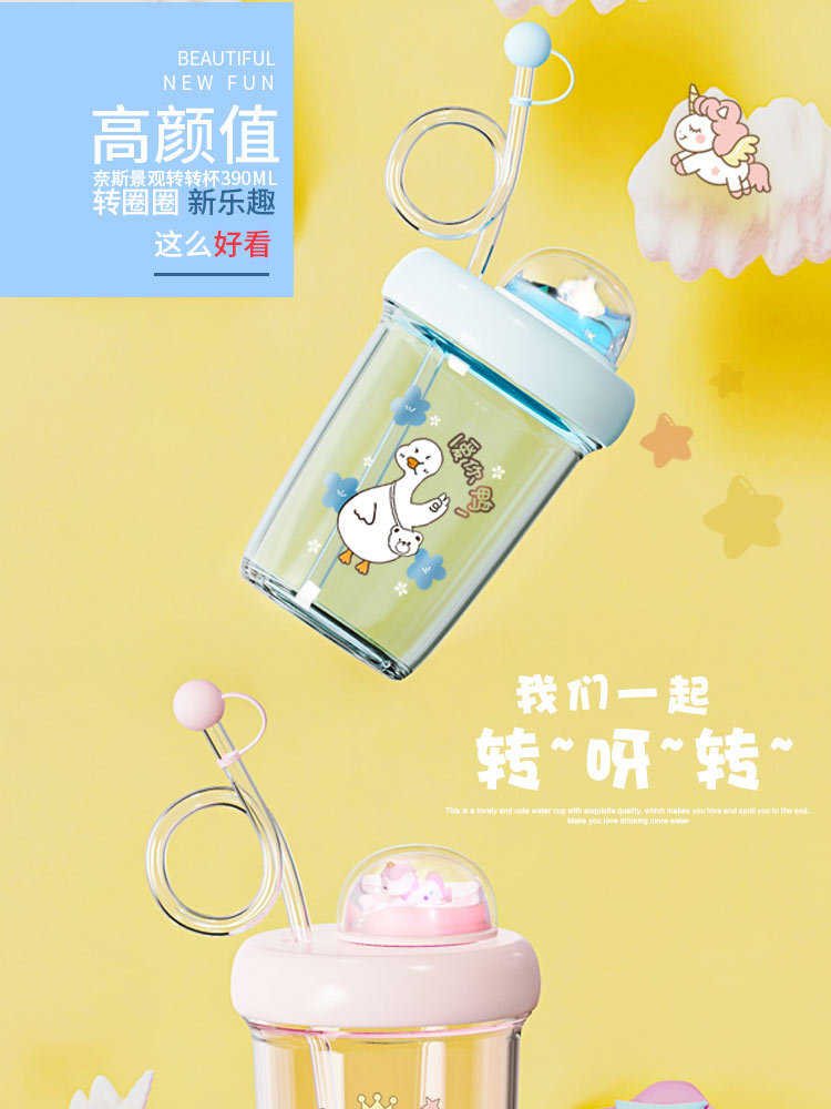 네스 풍경 회전 컵 창조적 인 만화 흡입 튜브 컵 재미 어린이 컵 귀여운 흡입 컵 머리카락의 세대스토어 가기