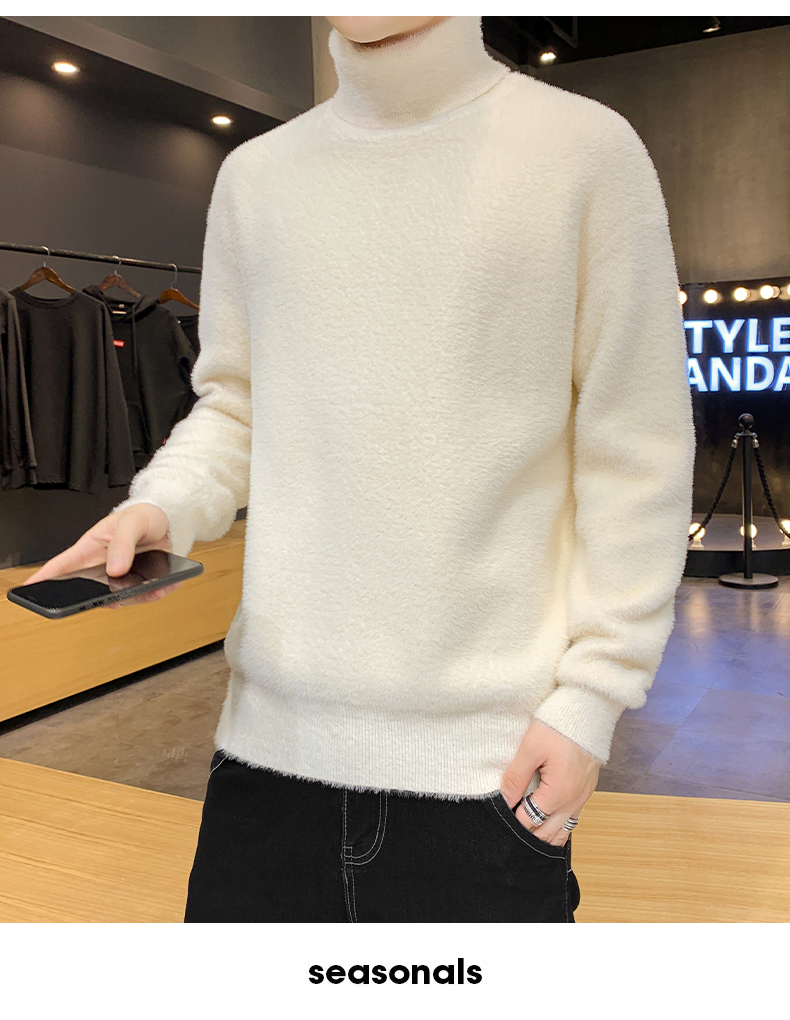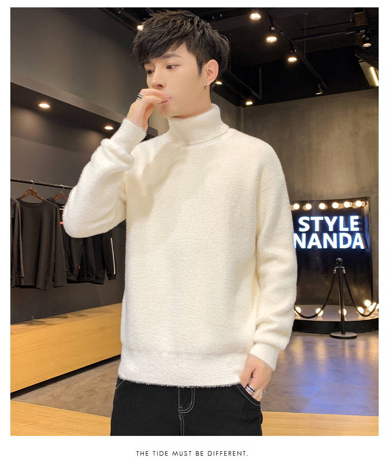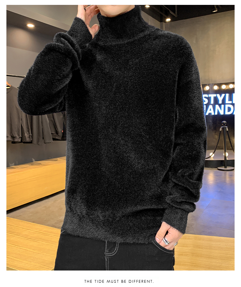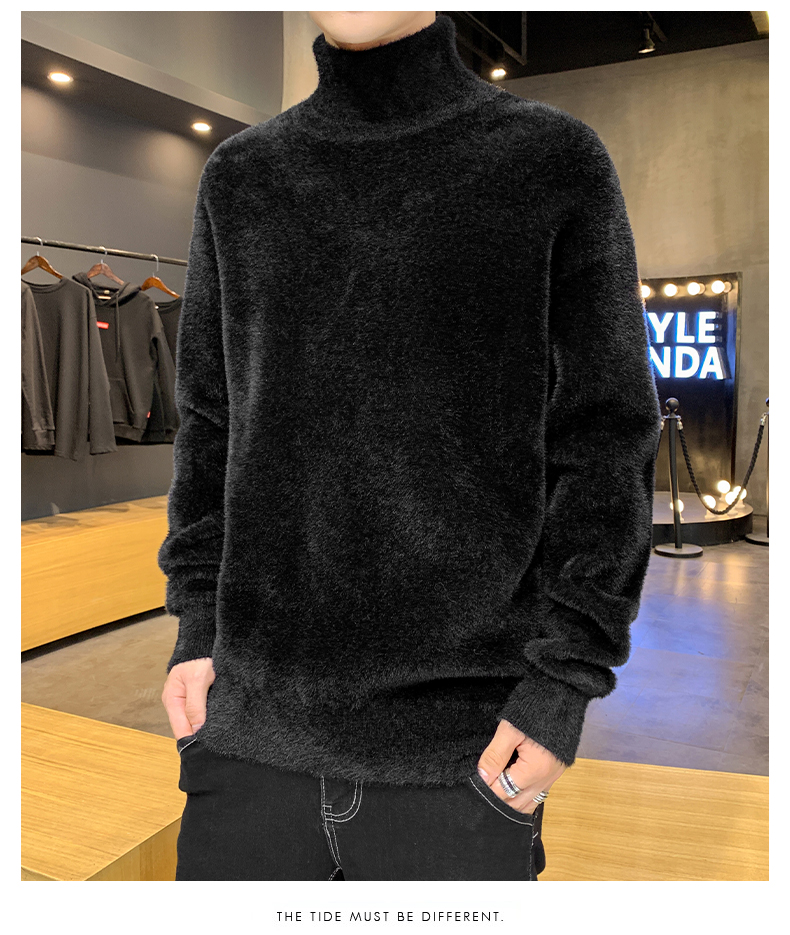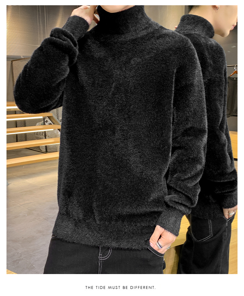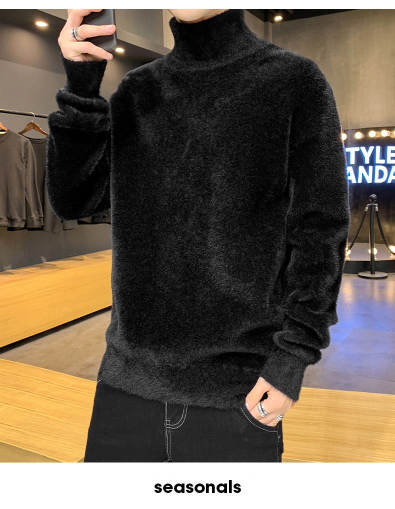 도매 가을과 겨울 두꺼운 남성 모조 골드 밍크 벨벳 터틀넥 스웨터 한국 트렌드 따뜻한 니트베이스 셔츠스토어 가기