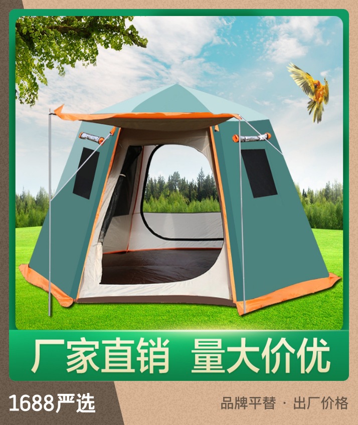 공장 텐트 야외 자동 텐트 3-4 명 5-8 명 자외선 차단제 빗길 캠핑 더블 알루미늄 폴 육각 텐트스토어 가기