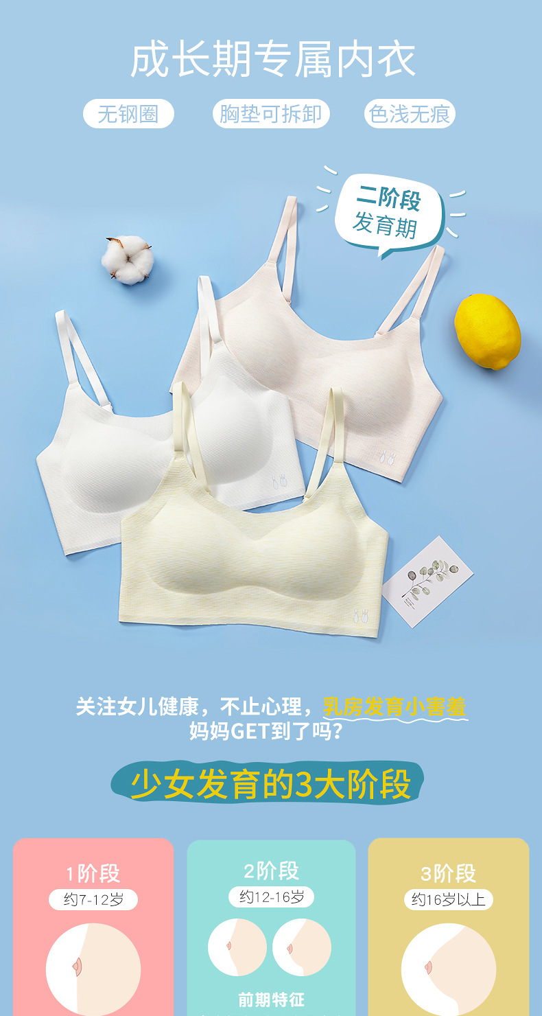 515 2 단 모달 여아 속옷 조끼 브라 스틸 링이없는 학생을위한 여아 발달 통기성 속옷스토어 가기