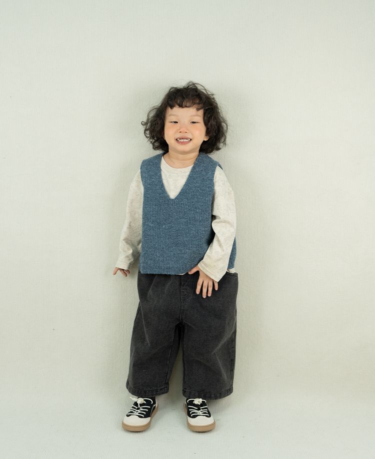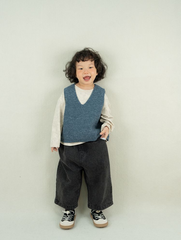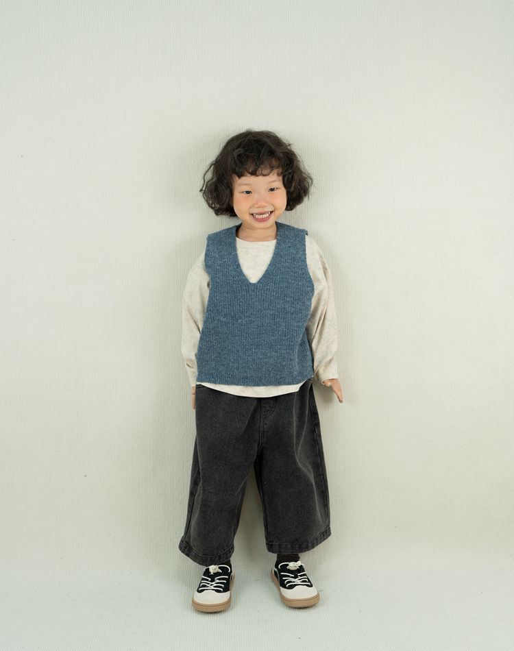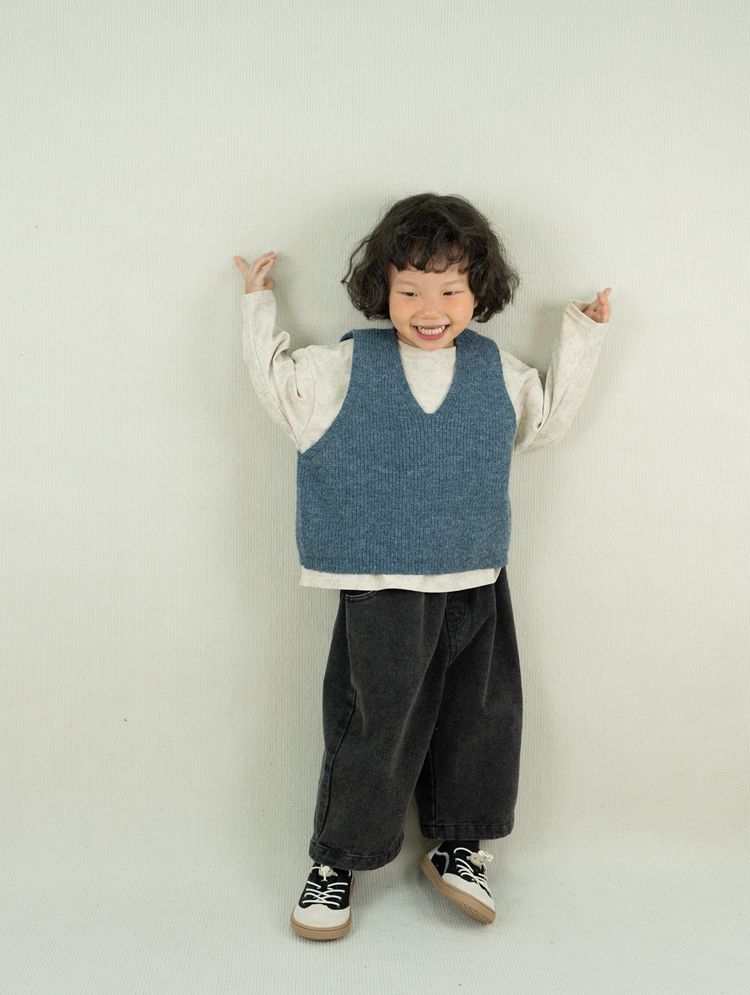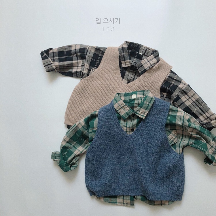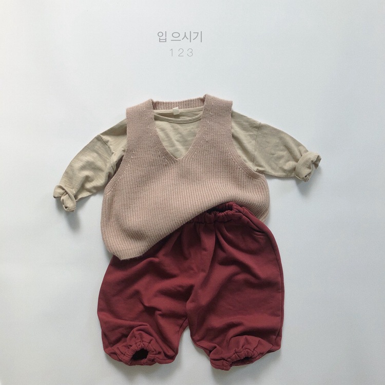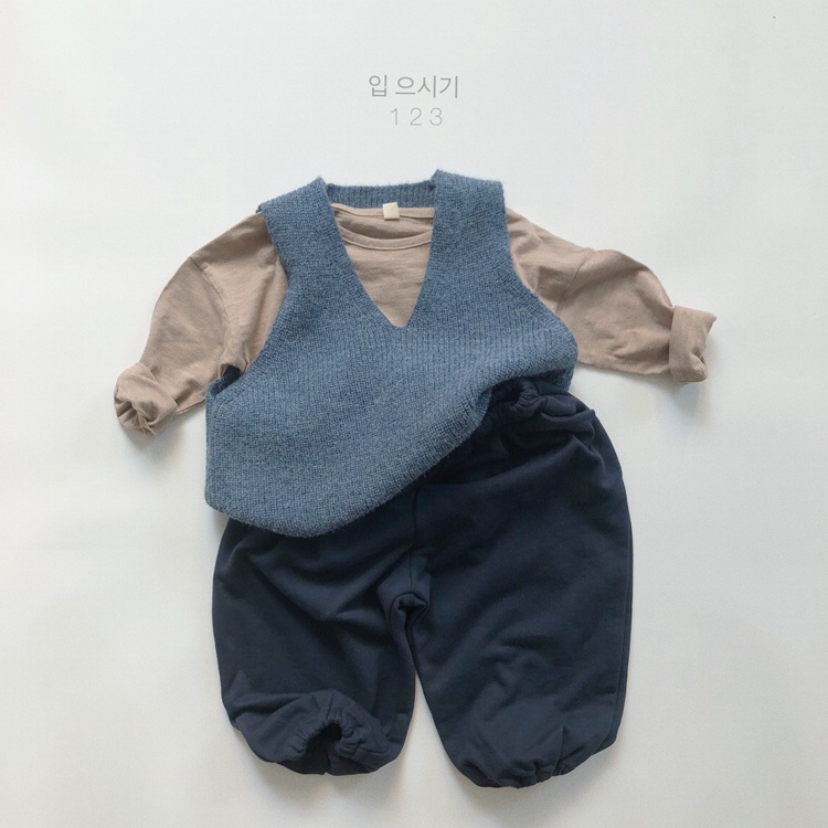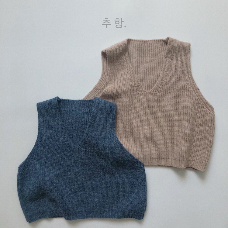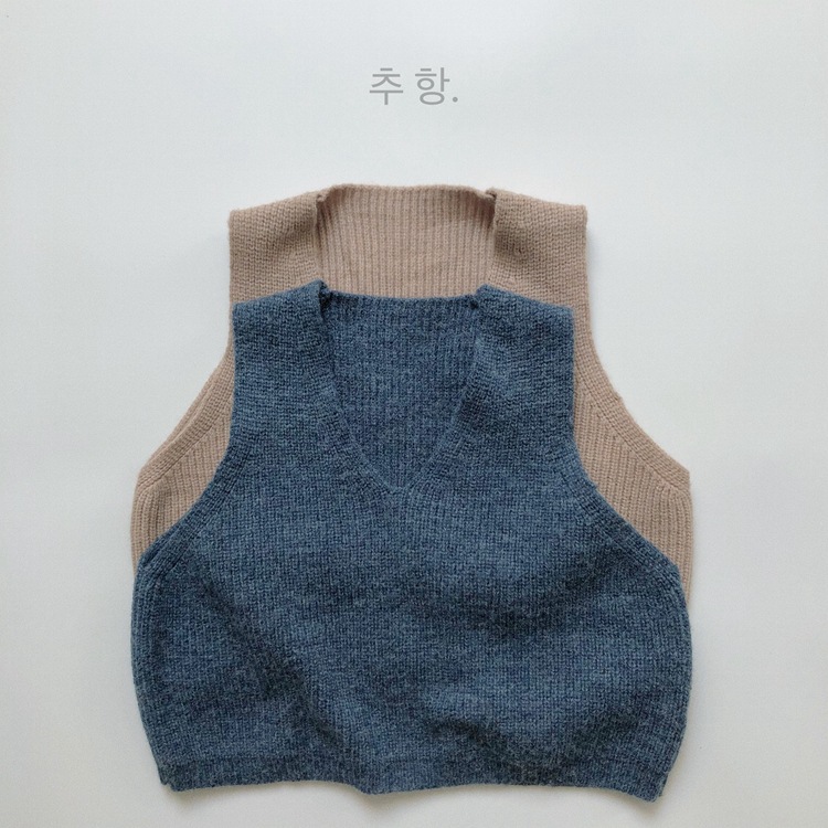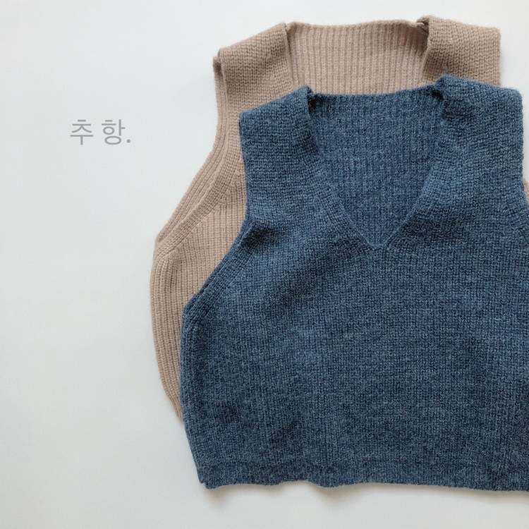 어린이용 스웨터 조끼 봄 신상품 숲속 스타일 트렌디한 브이넥 니트웨어 남녀공용 민소매 조끼 외출용스토어 가기