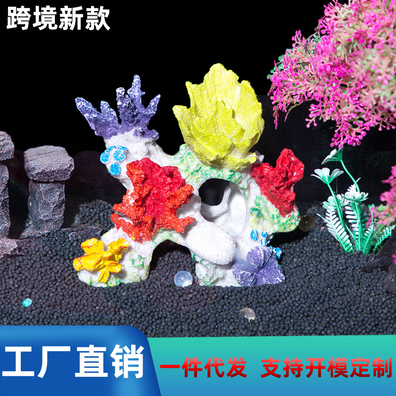 국경 간 바다 탱크 수중 세계 구멍 새우 하우스 수족관 수지 장식 어항 풍경 장식 산호초