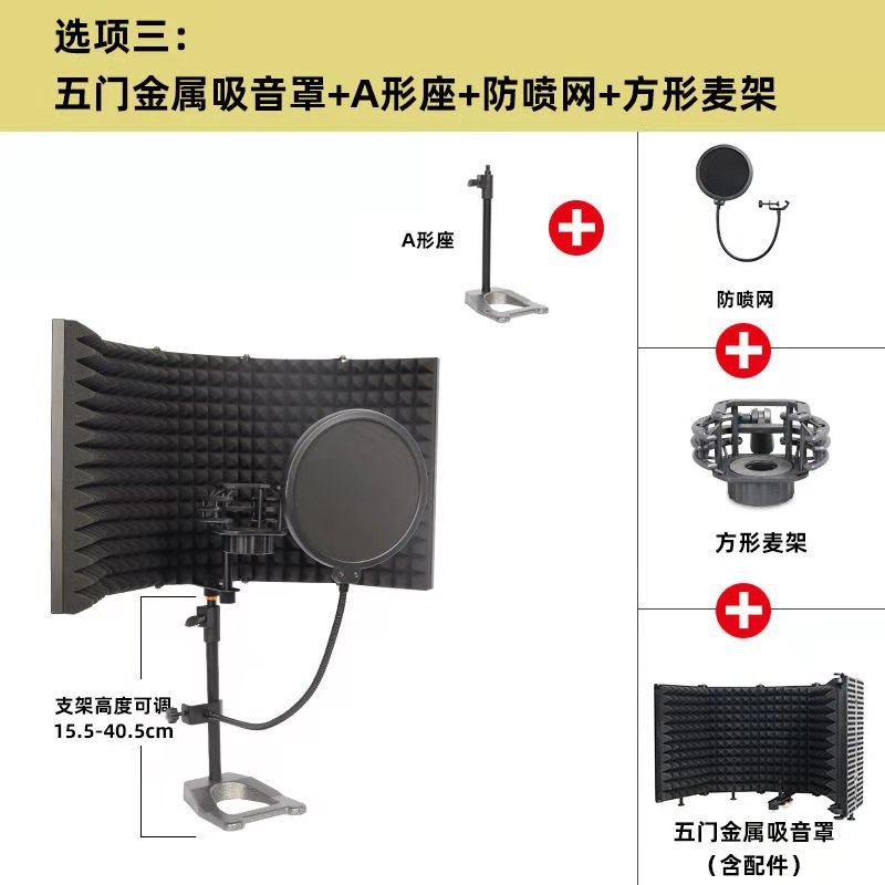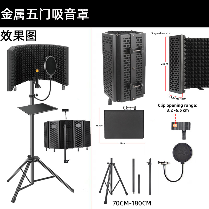 마이크 녹음 스튜디오 3 도어 5 도어 방음 커버 마이크 방송 금속 쉘 흡음 커버 소음 감소 흡음 커버스토어 가기