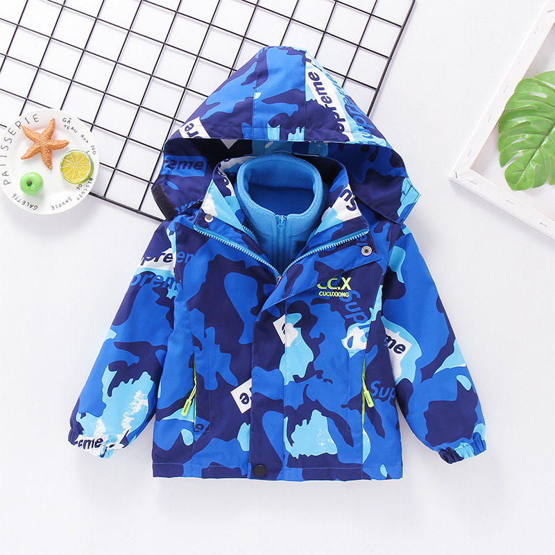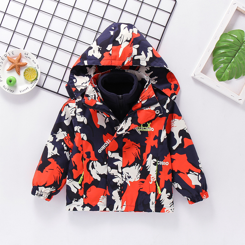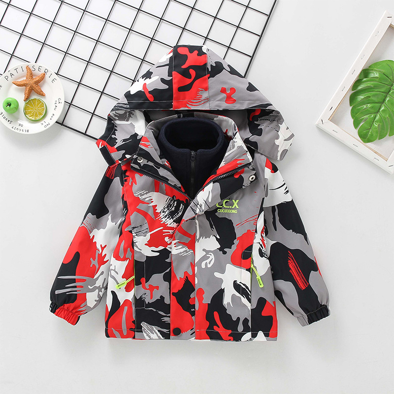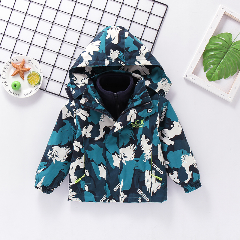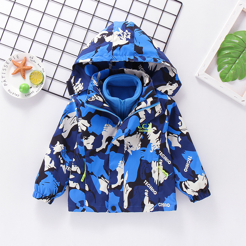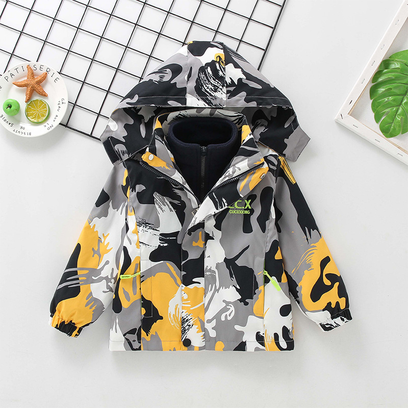 2025년 가을 겨울용 남아용 아동 재킷, 중대형 아동용 플리스 안감 3-in-1 아동용 방풍 재킷, 유럽 및 미국 스타일 카모플라주스토어 가기