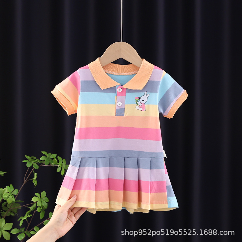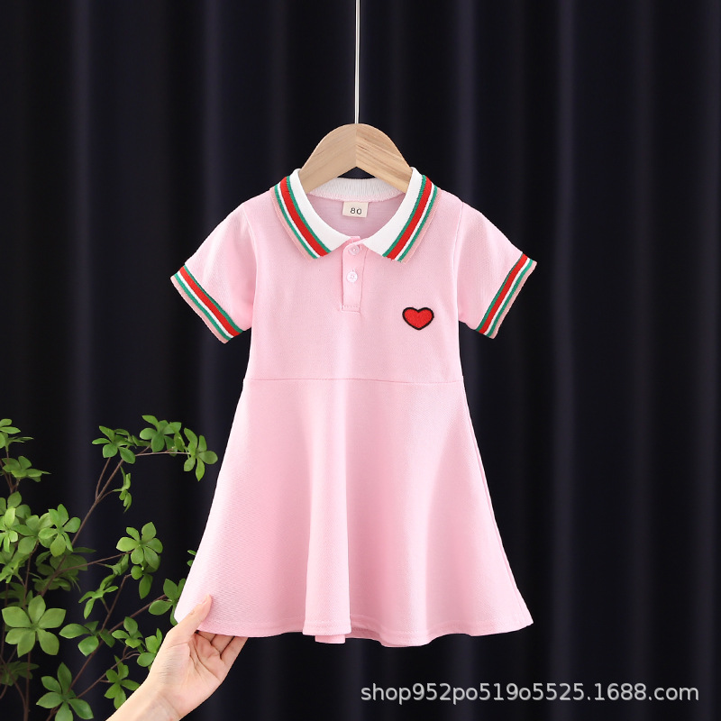 여아 원피스 여름 새로운 스타일 어린이 아기의 옷깃 치마 주름 치마 아기의 반팔 치마 유행스토어 가기