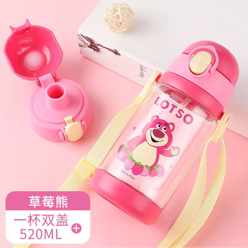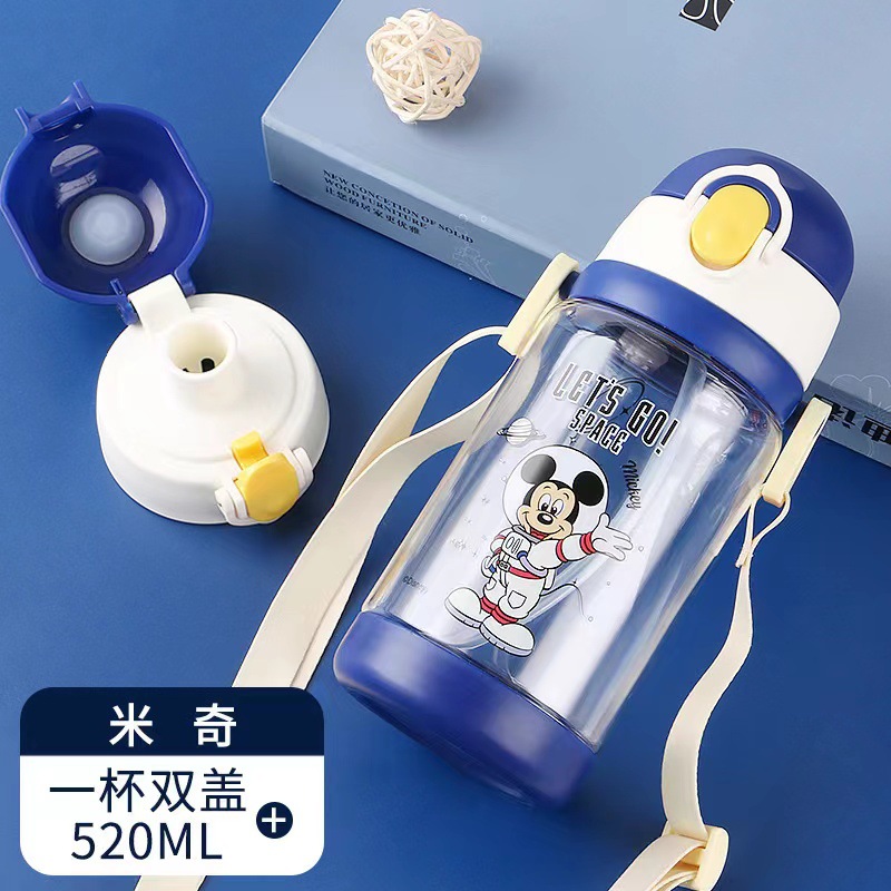 어린이 물컵 플라스틱 컵 빨대 포함 창의적인 개학 시즌 학생 스포츠 물병 도매 휴대용 만화 스타일