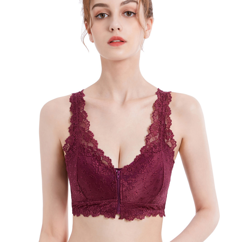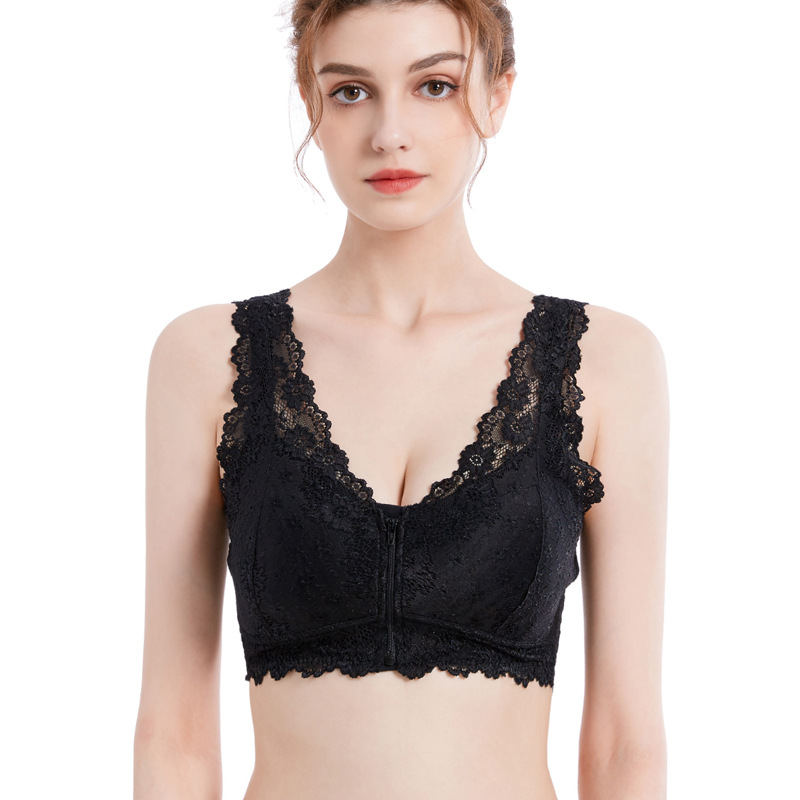 재고 전면 지퍼 섹시 레이스 분리형 가슴 패드 요가 스포츠 조끼 속옷 플러스 사이즈 브래지어 도매 39스토어 가기