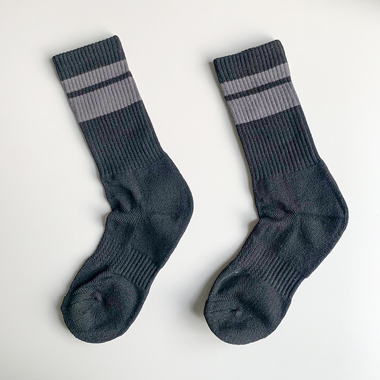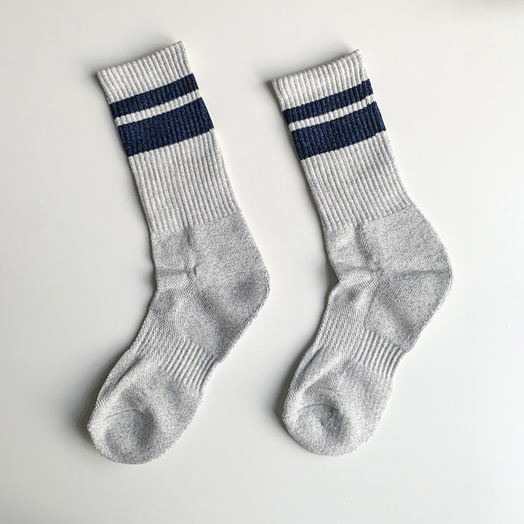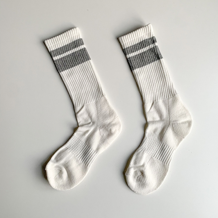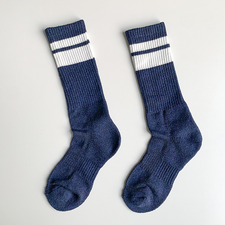Yu Wenle 같은 스타일 긴 스테이플 면 스트라이프 양말 두꺼운 수건 바닥 양말 도구 간단한 스포츠 통기성 스타킹스토어 가기