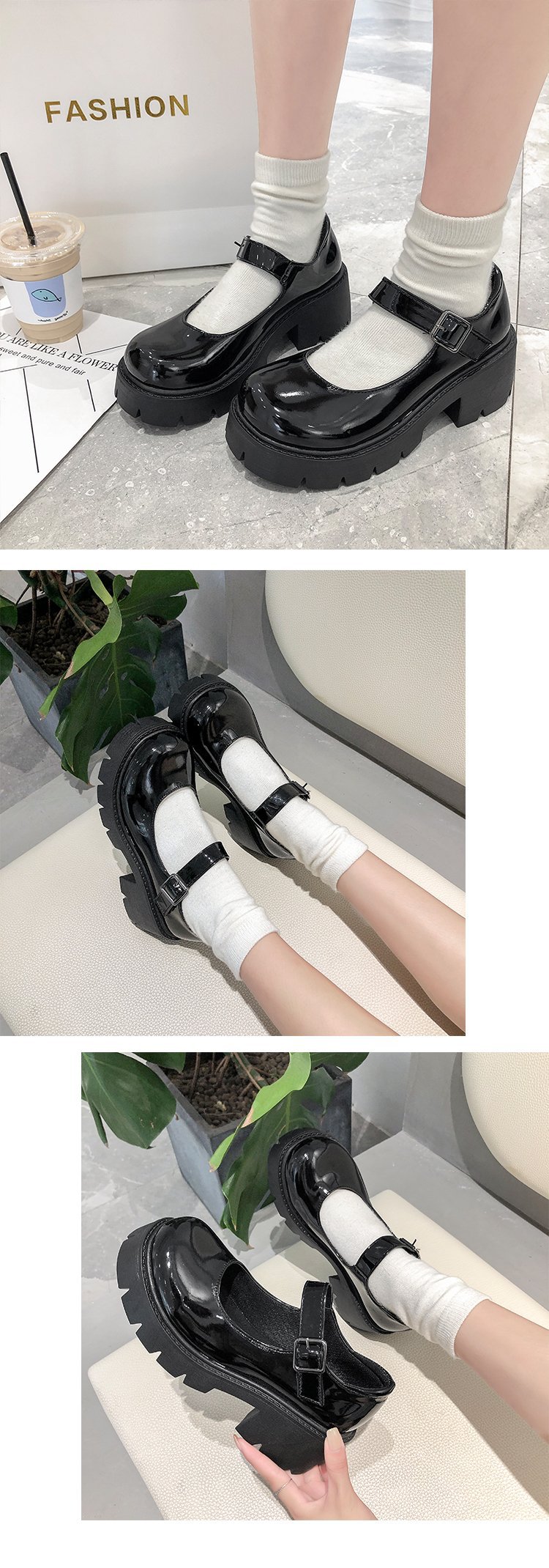 2021 봄과 여름 새로운 메리 제인 신발 스몰 사이즈 두꺼운 굽 두꺼운 밑창 아카데미 스타일 작은 단일 레이어 신발 레트로 작은 가죽 신발 여성용