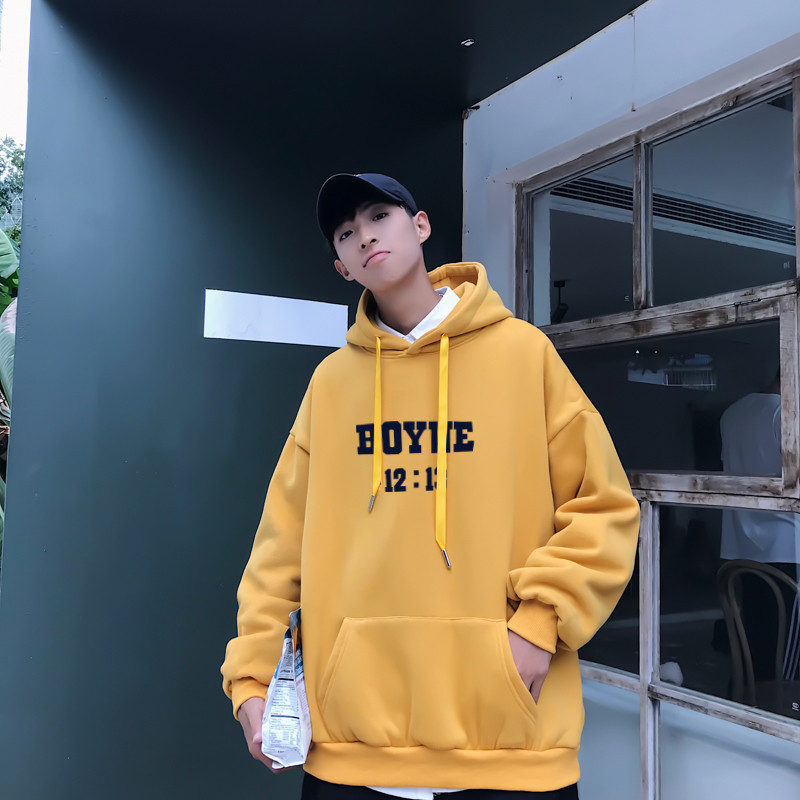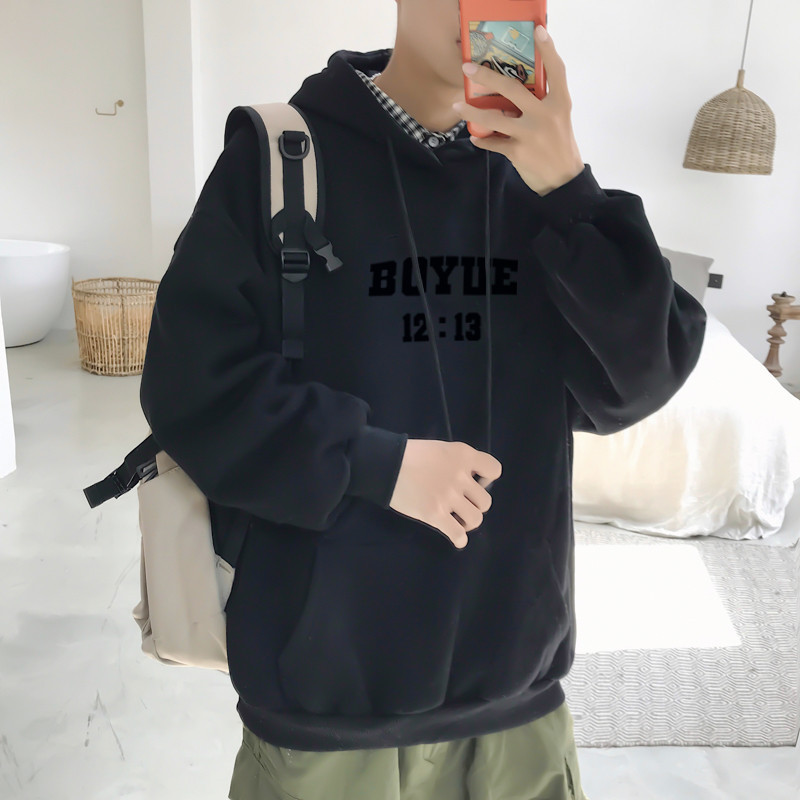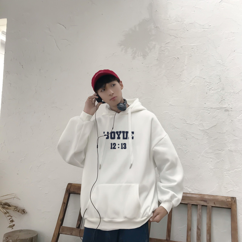 봄과 가을 알파벳 인쇄 후드 기모 스웨터 남자의 유행 최고 한국 스타일 홍콩 스타일 풀오버 느슨한 캐주얼 재킷