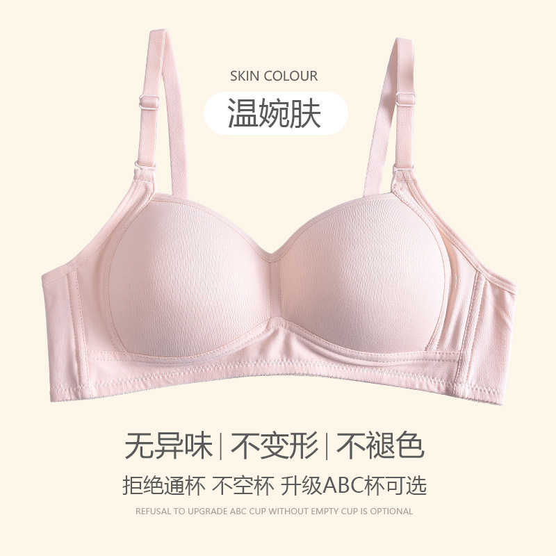 彰艳彩棉色无钢圈少女内衣舒适轻薄夹棉少女文胸大码后三排扣胸罩