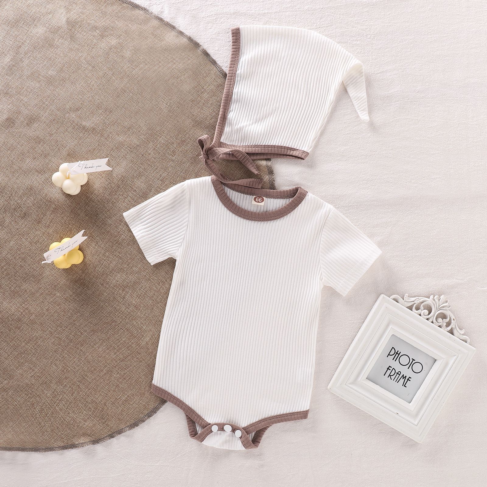 Ins 베이비 베이비 여름 반팔 남성과 여성 베이비 라운드 넥 크롤링 슈트 코튼 핏 스트립 삼각형 크롤링 스트랩 모자