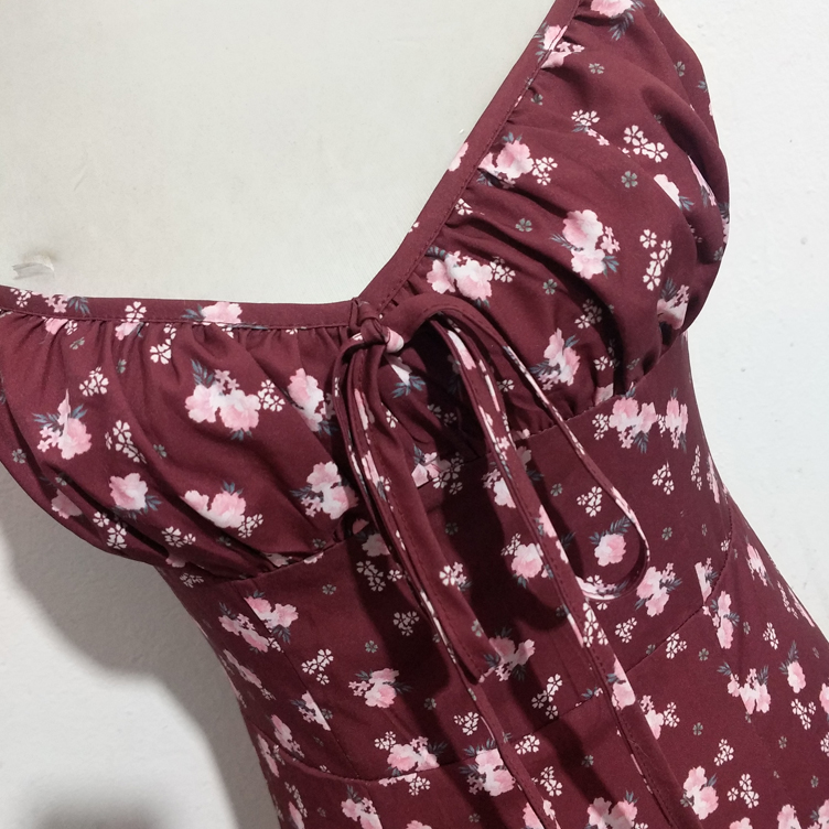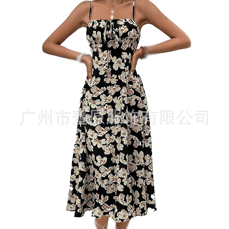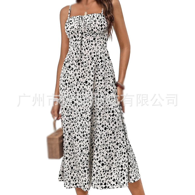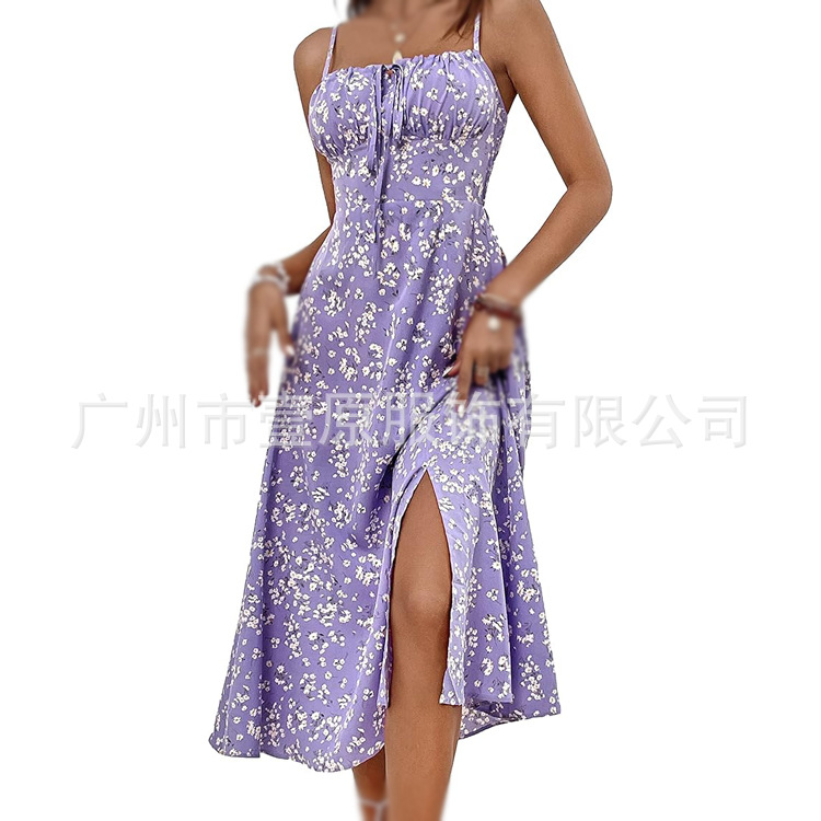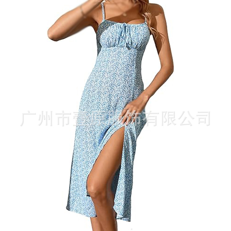 2023 여름 유럽과 미국 여성의 섹시한 패션 꽃 주름 레이스 업 스플릿 스트랩 백리스 원피스 여성스토어 가기