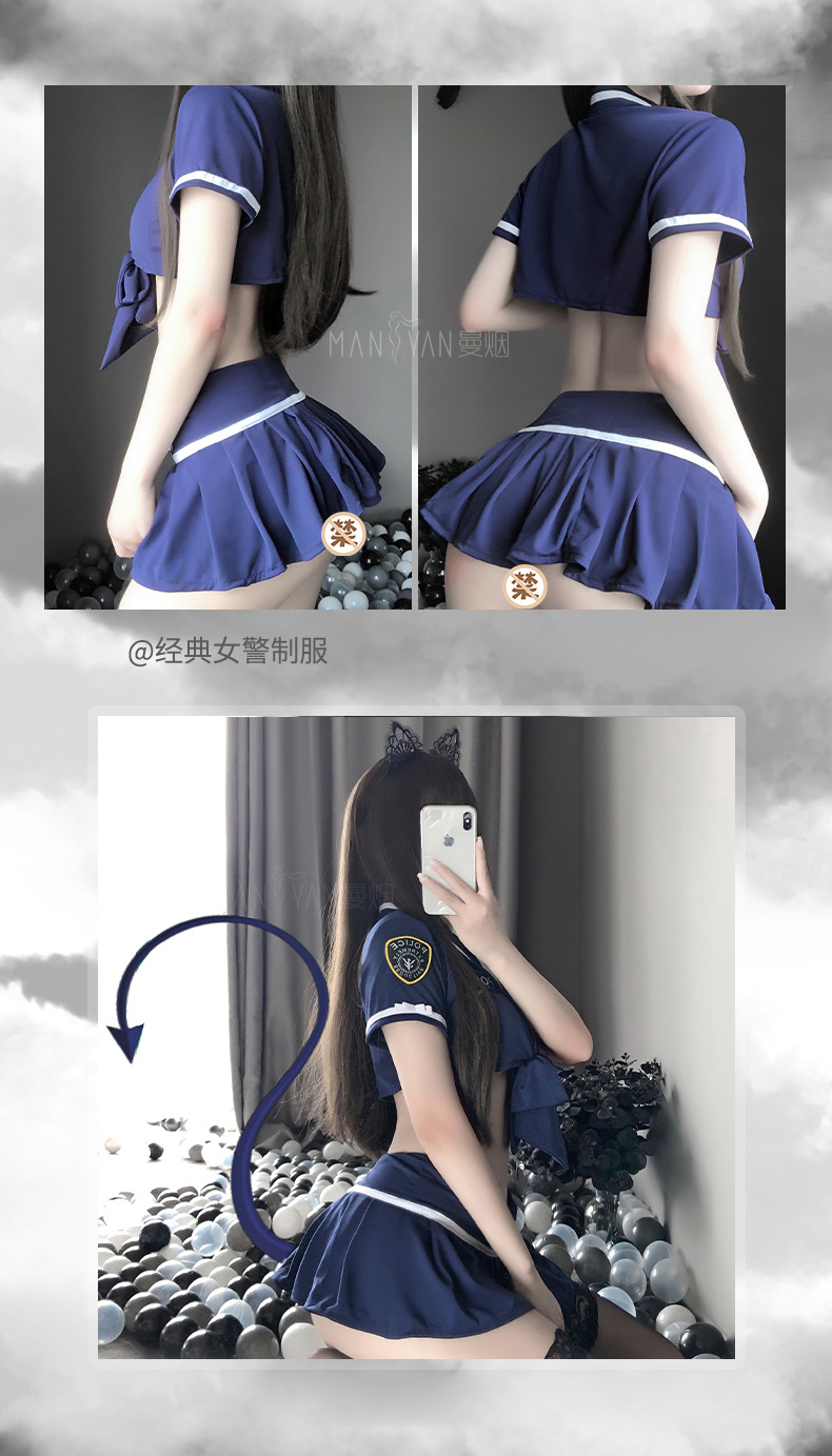 Manyan 섹시한 속옷 대담한 등이없는 레이스 업 섹시한 경찰 주름 치마 유니폼 세트 2078스토어 가기