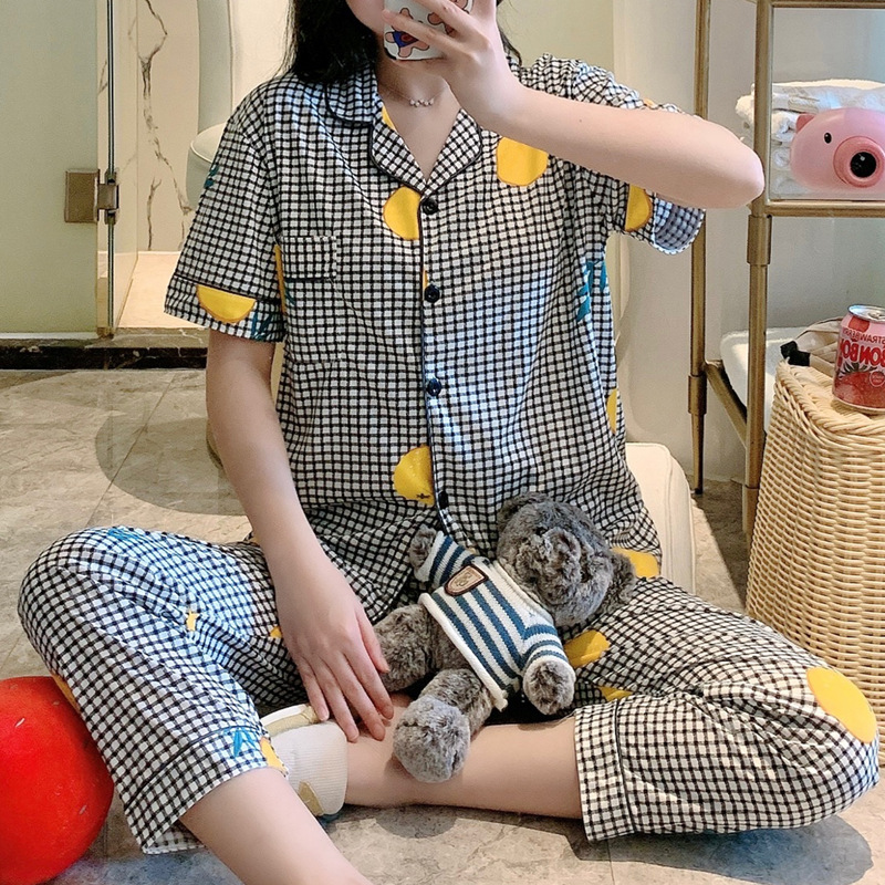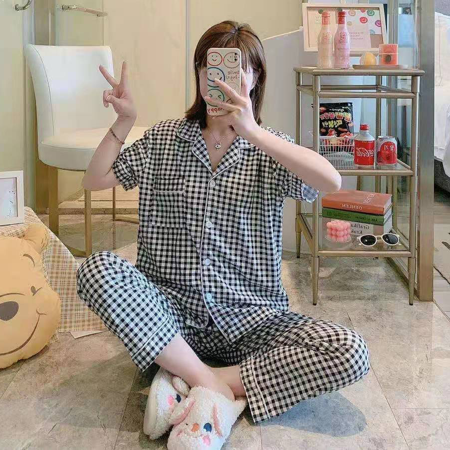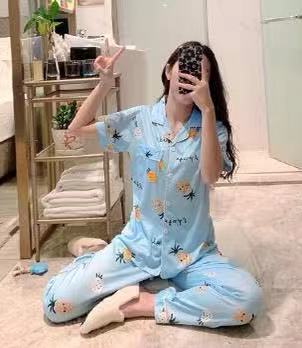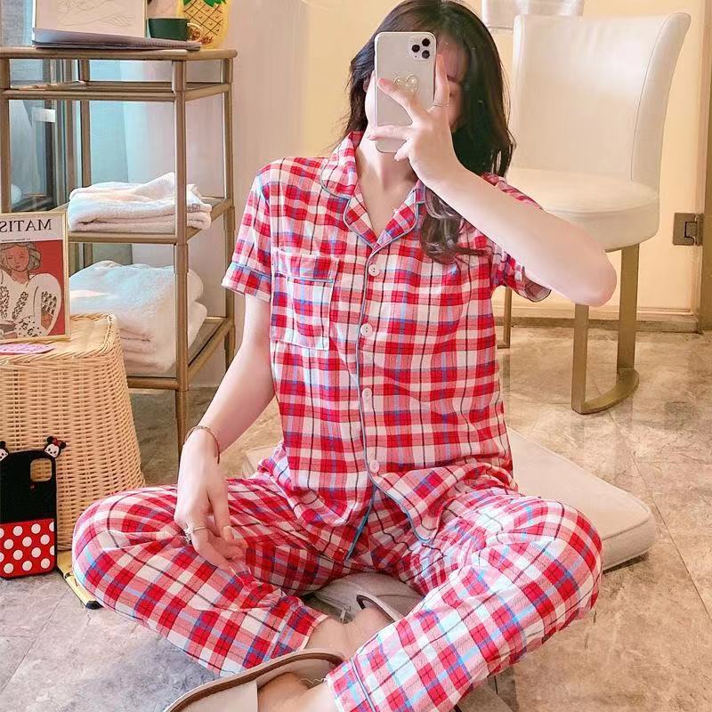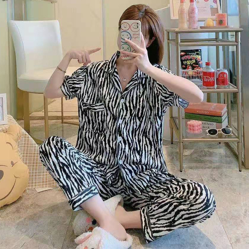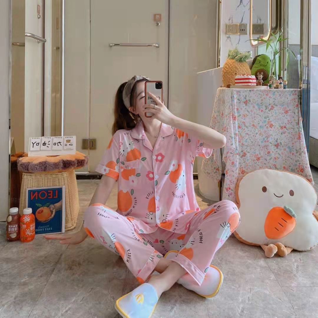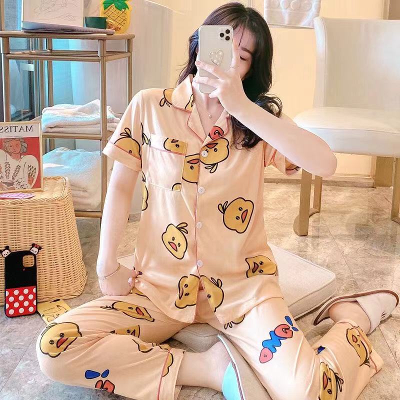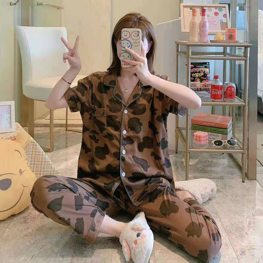 싱글 여름 잠옷 여성용 반팔 바지 카디건 외 발 용품 달콤한 Xueqing 신입생 가정 옷 짧고 긴 세트 한국어 버전스토어 가기