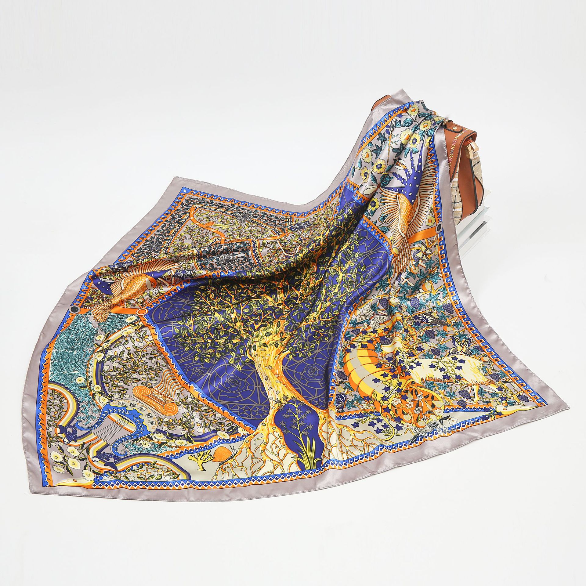 Gaohe 유행 우아한 포춘 나무 인쇄 스카프 인공 실크 새틴 90cm 큰 사각형 스카프 인터넷 유명 여성 스카프스토어 가기