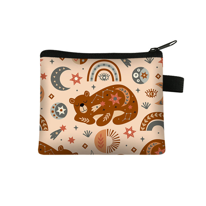 2024 만화 동물 패션 프린트 어린이 동전 지갑 학생용 폴리에스터 카드 지갑 동전 수납 가방 핸드백스토어 가기
