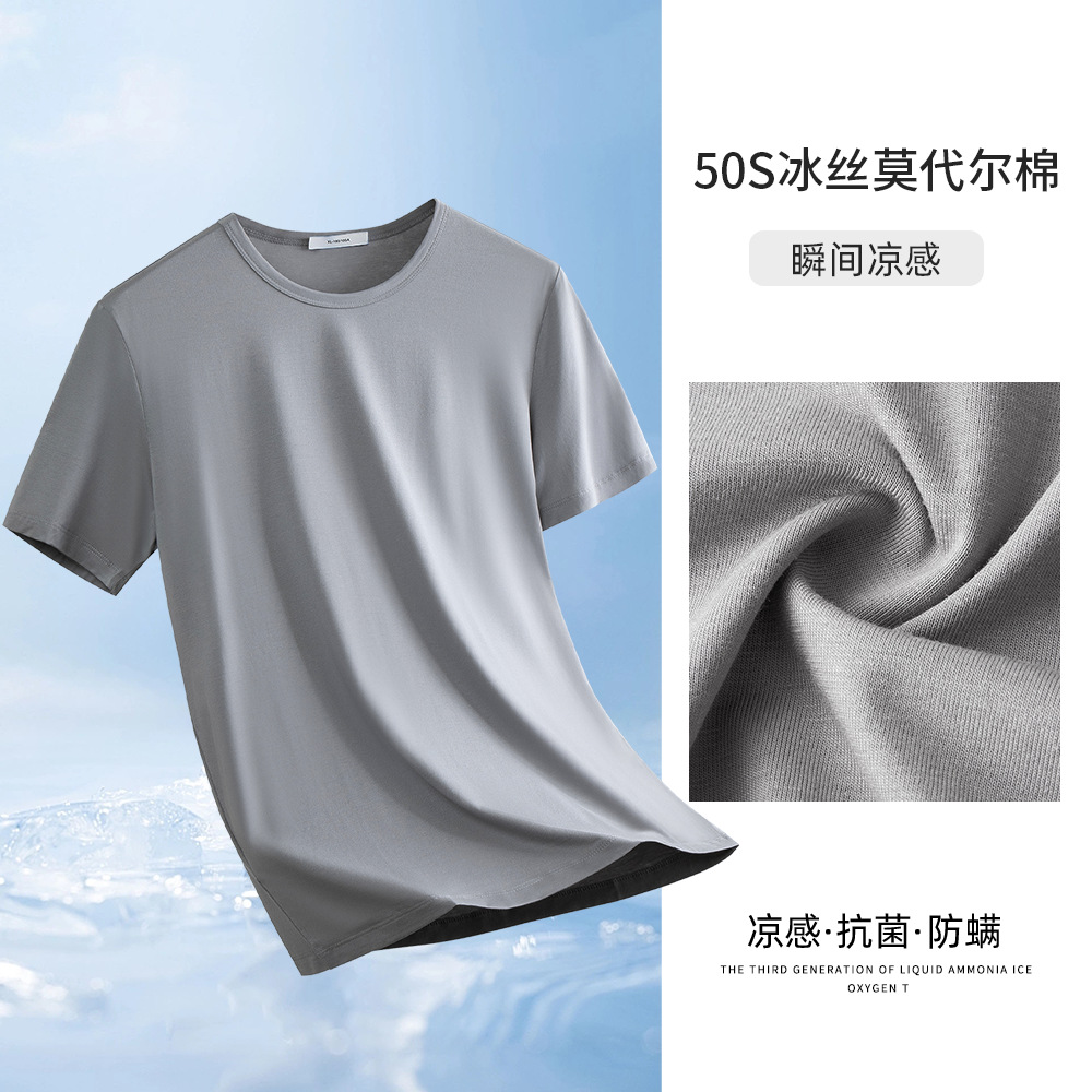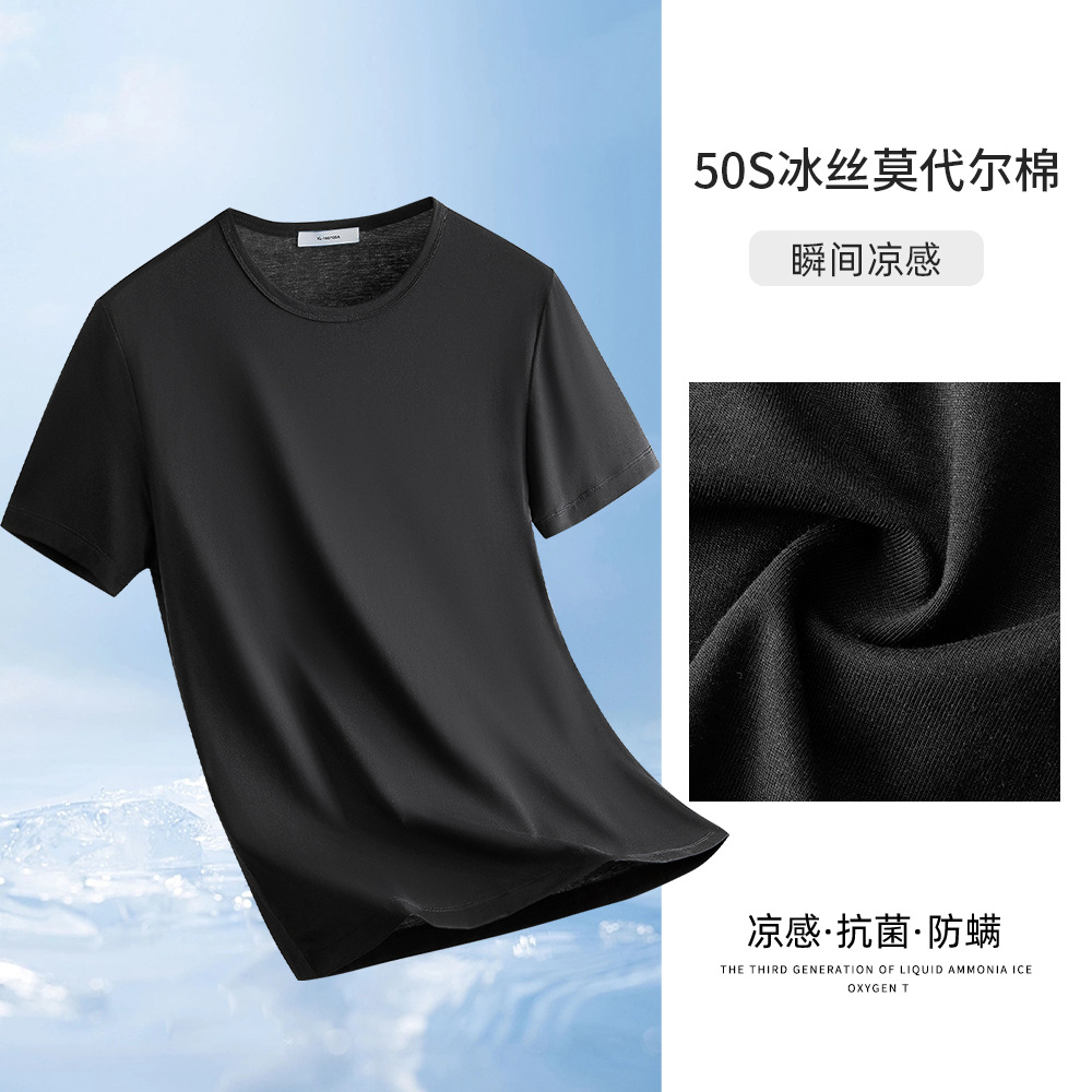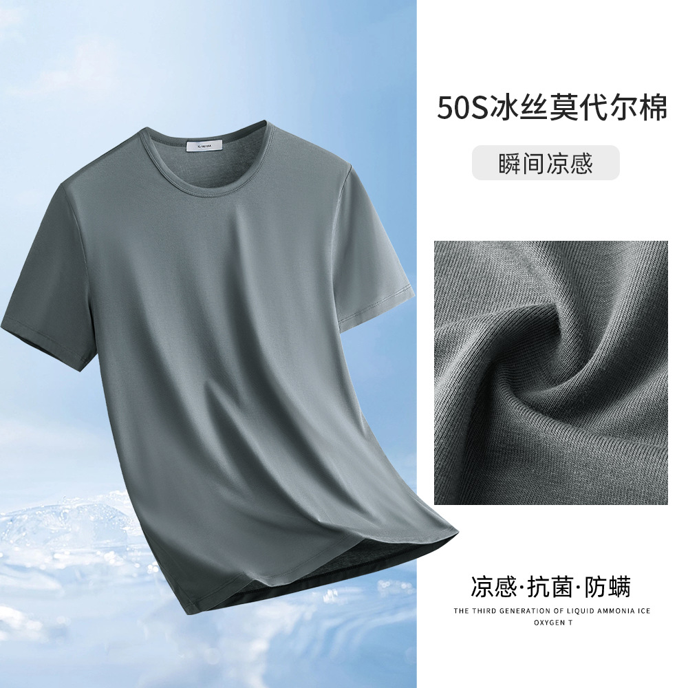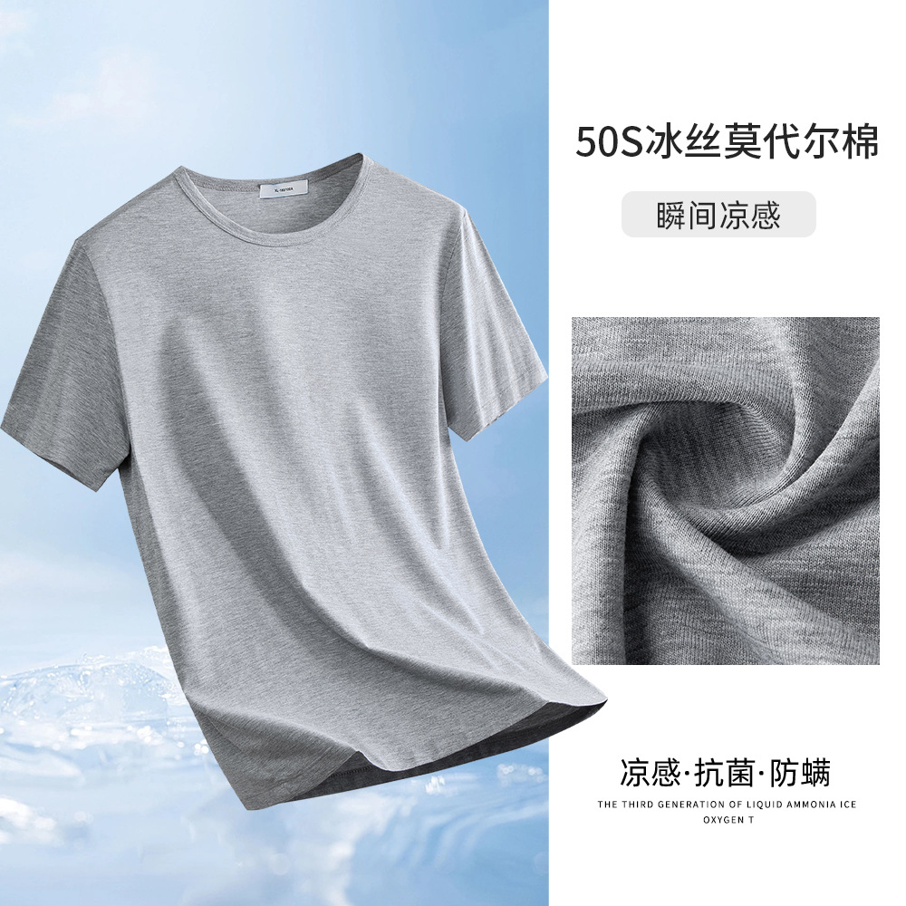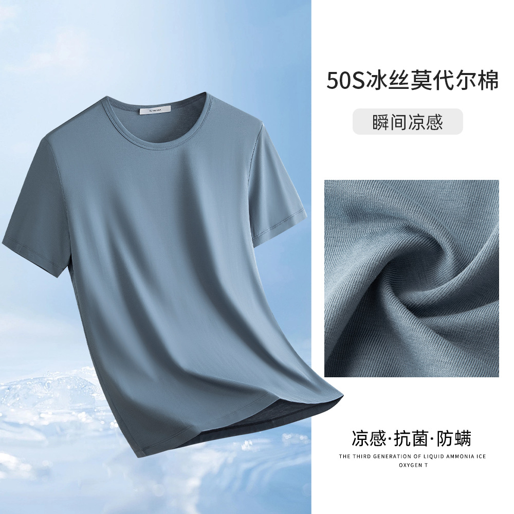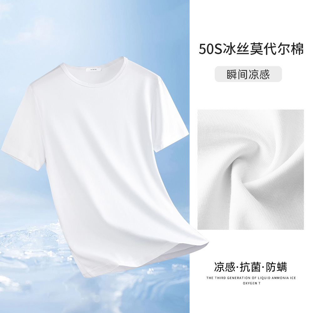 [렌징 모달 T] 아이스 실크 새롭게 업그레이드된 모달 반팔 티셔츠 남성용 7A 항균 반팔 화이트 바텀 셔츠