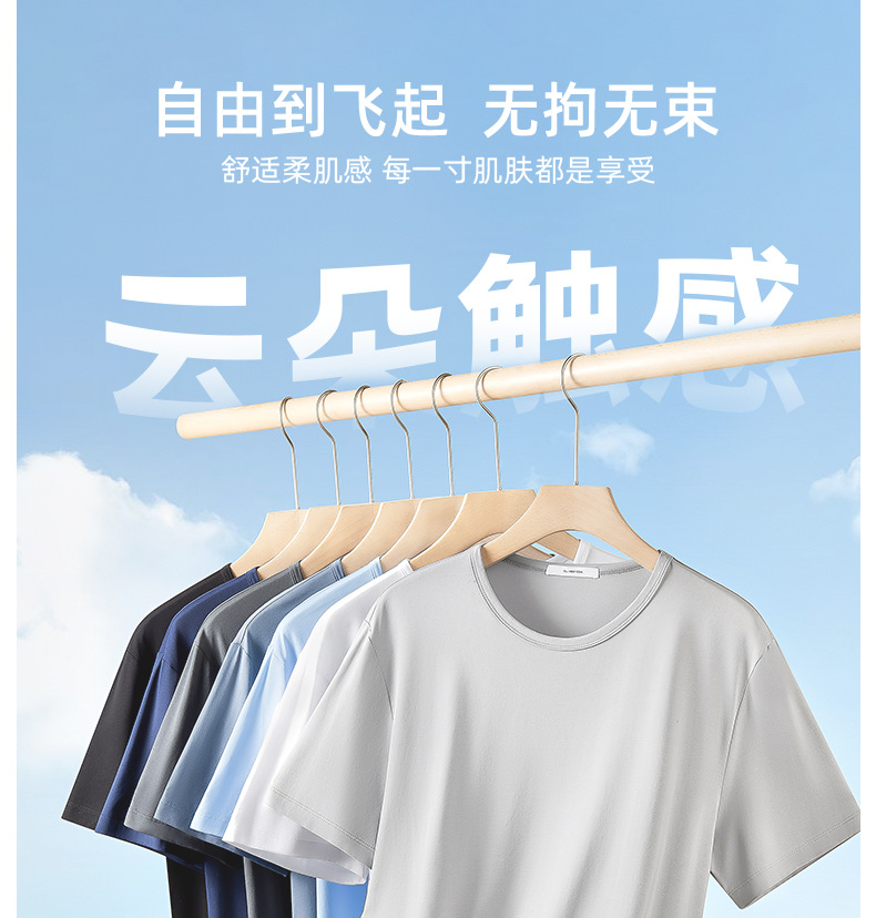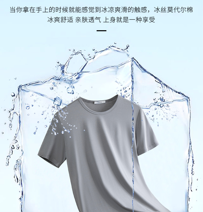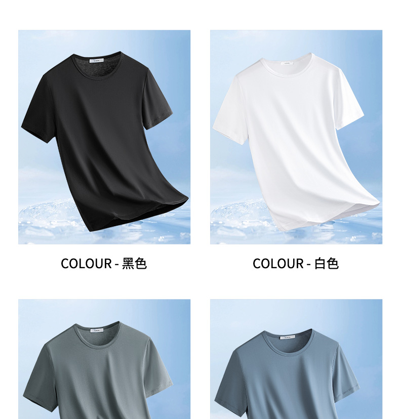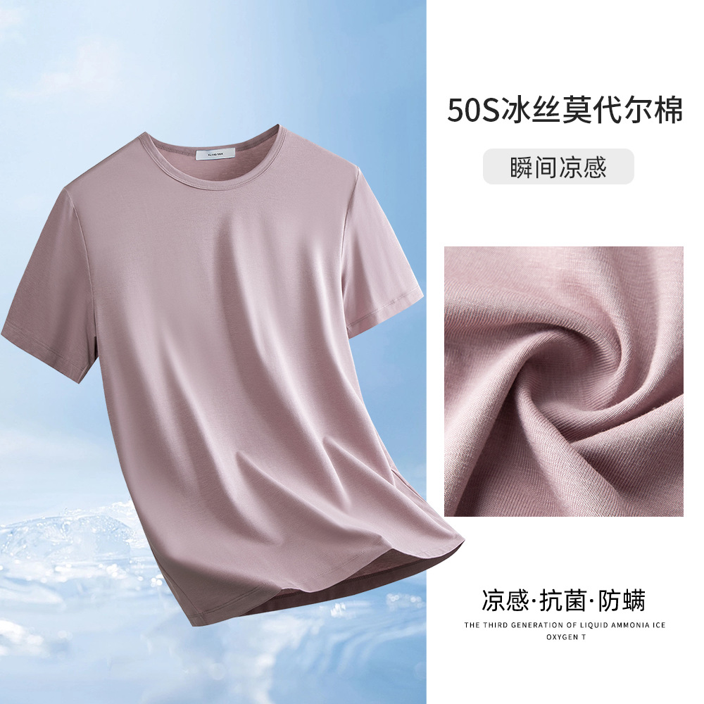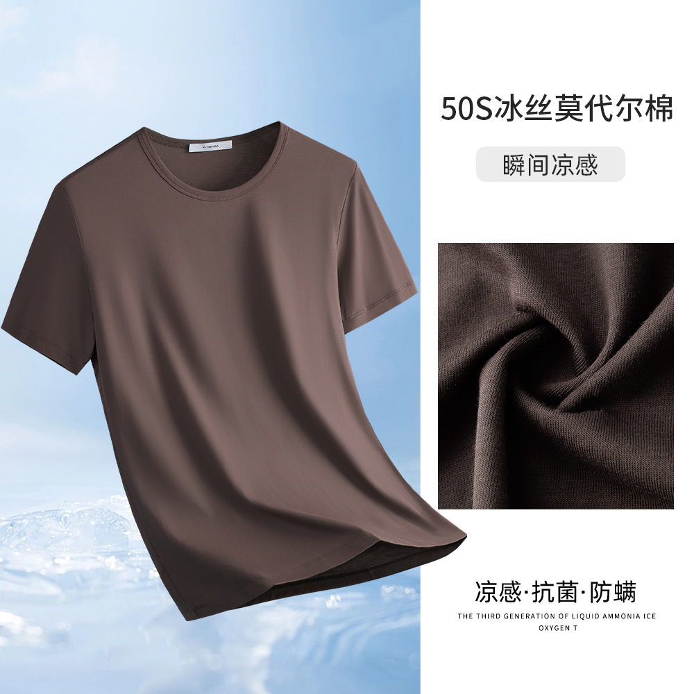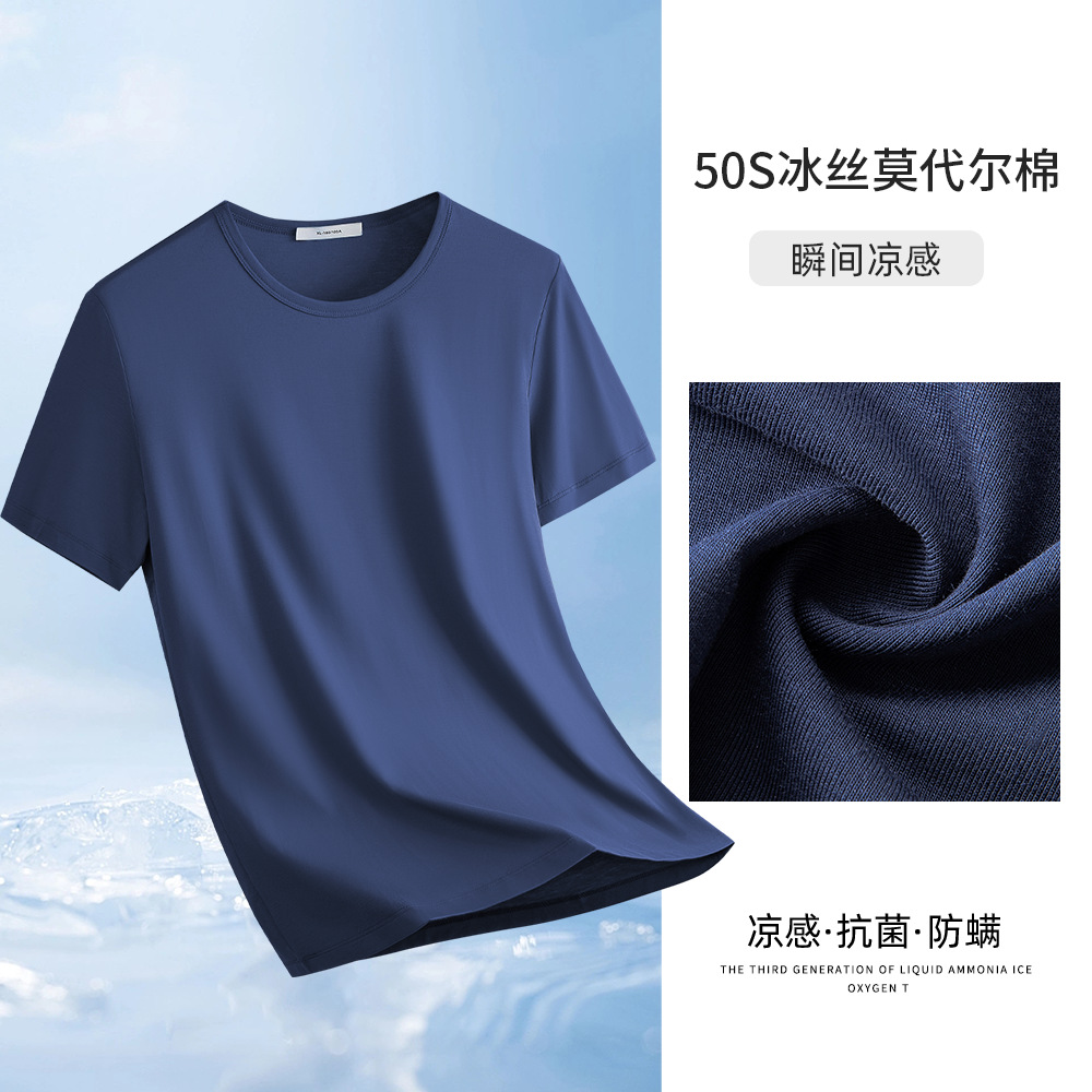 [렌징 모달 T] 아이스 실크 새롭게 업그레이드된 모달 반팔 티셔츠 남성용 7A 항균 반팔 화이트 바텀 셔츠