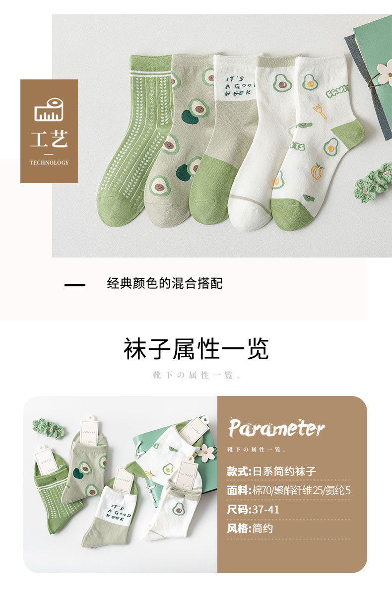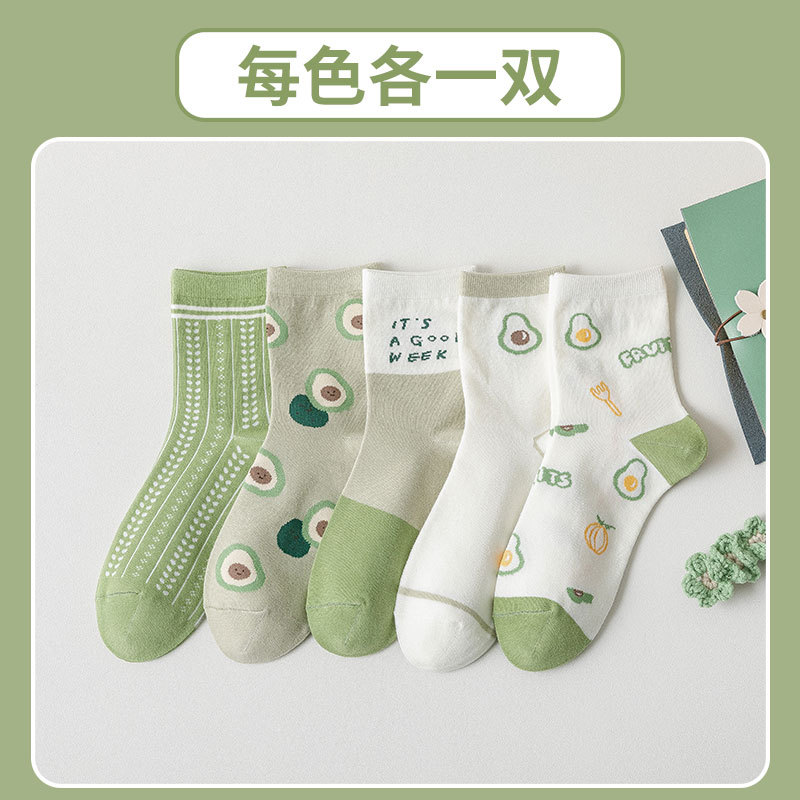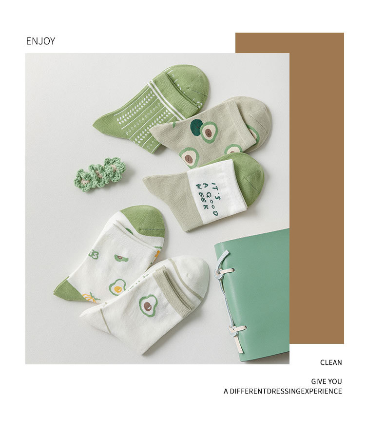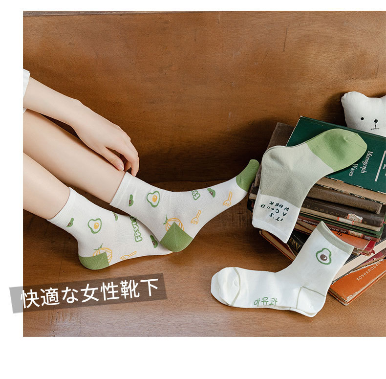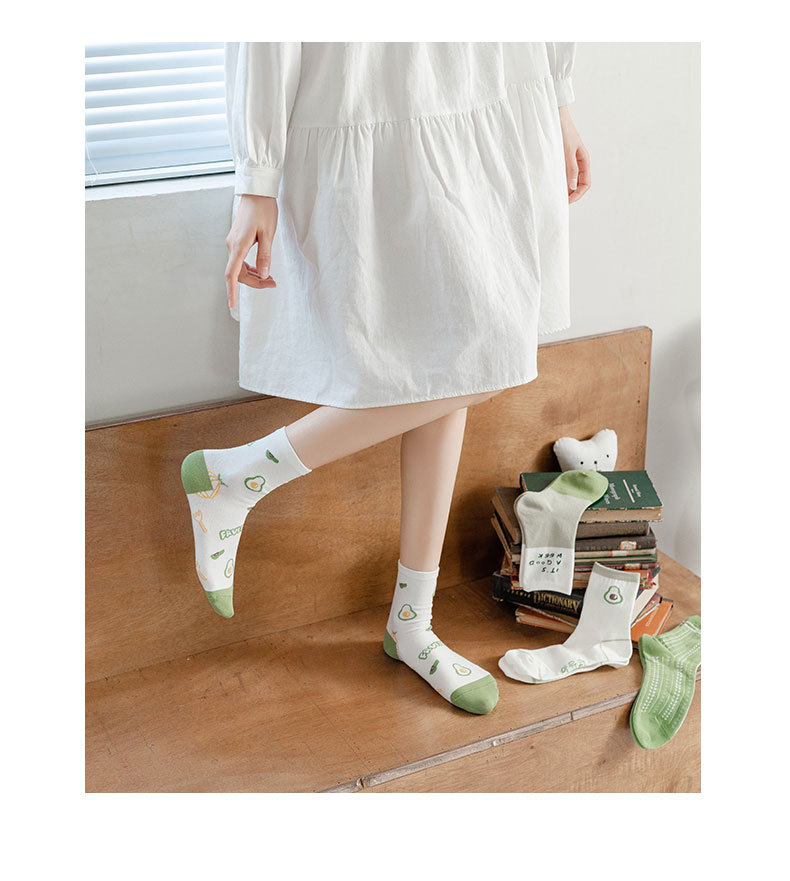 녹색 양말 어린이 4 계절면 양말 높은 양말 귀여운 만화 아보카도 조수 양말 Zhuji 도매스토어 가기