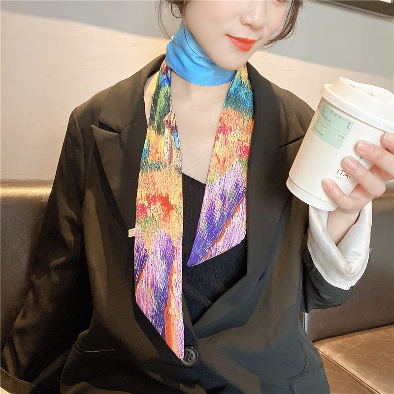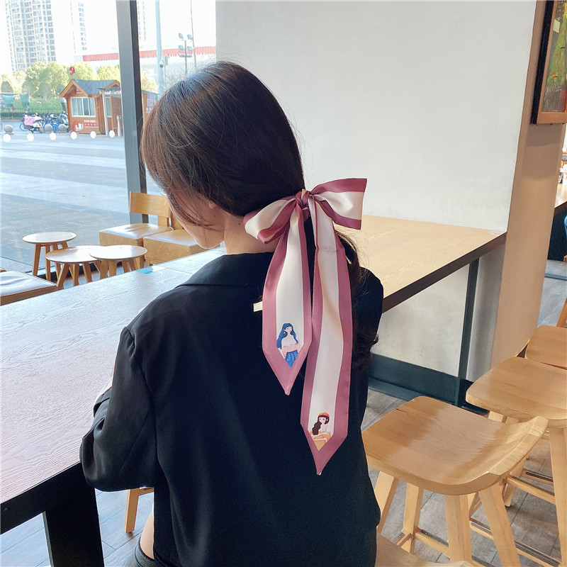 봄과 여름 만화 긴 작은 실크 스카프 얇은 좁은 리본 넥타이 가방 리본 헤어 벨트 스카프 여성 장식 스카프 벨트스토어 가기